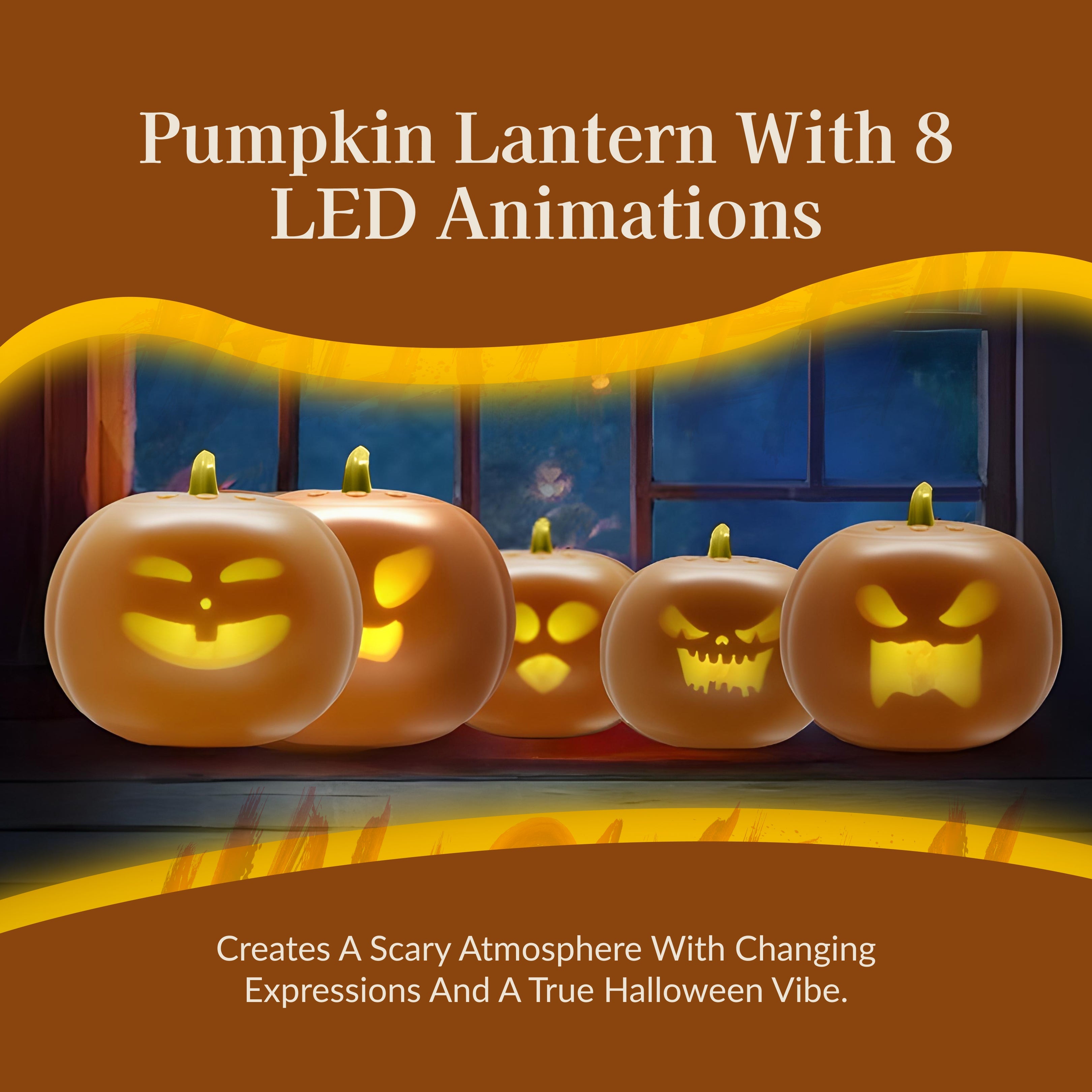 The Animated LED Projection Halloween Pumpkin Lantern from Weslen Home features a talking pumpkin with built-in LED projection to create a horror atmosphere. This halloween pumpkin lantern is suitable for Halloween gatherings, entryways, patios, or indoor spaces where thematic lighting and sound effects enhance the environment. Its durable construction supports repeated seasonal use, while the integrated projection system displays animated images and audio for interactive holiday decor.