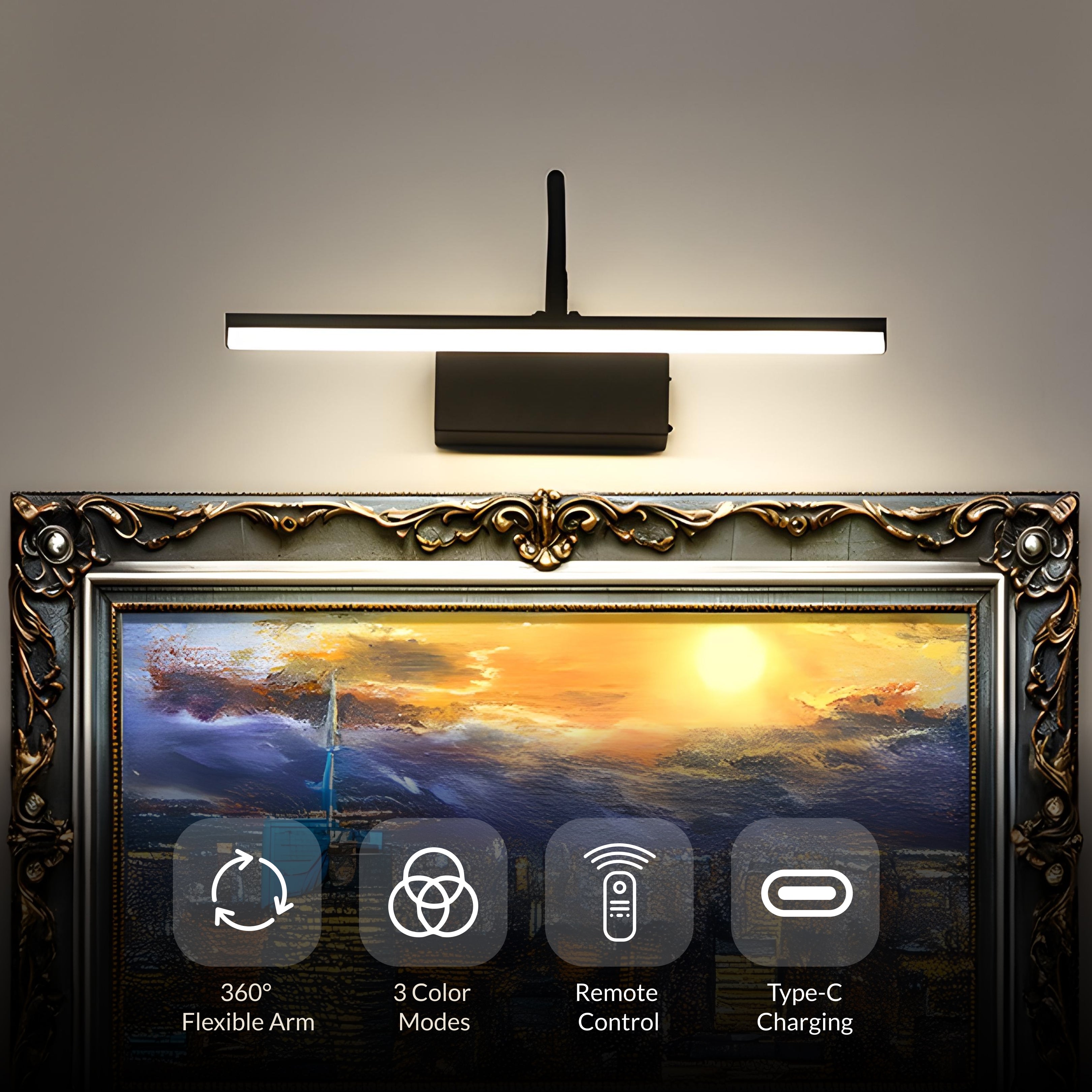 The ArcFlex Remote Control Picture Light from Weslen Home features a remote control, flexible adjustment, and USB charging. This picture light is designed for indoor use and works well in living rooms or offices, providing targeted illumination for artwork, photographs, or documents. With its adjustable arm and wireless operation, it offers convenient, customizable lighting for a range of display needs.