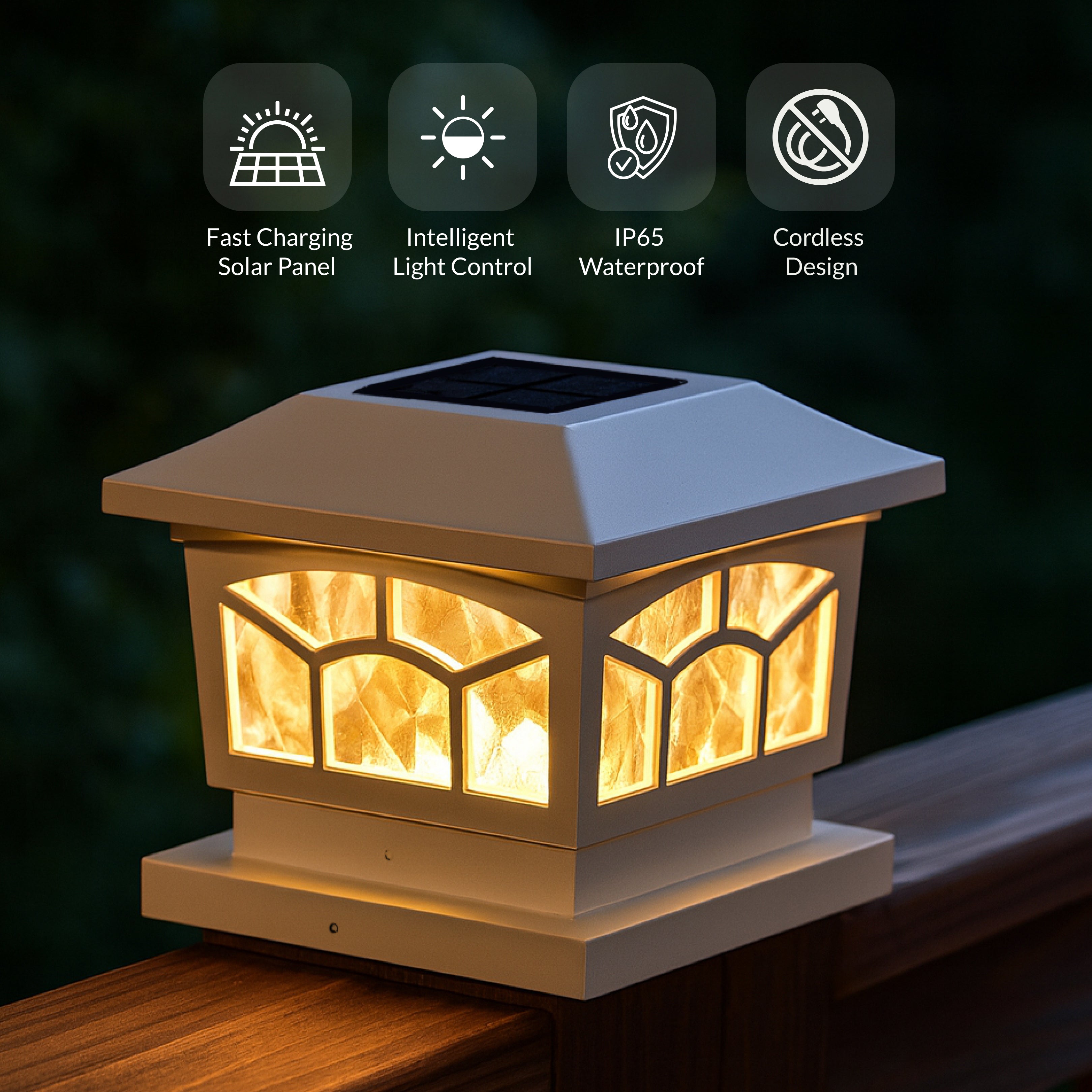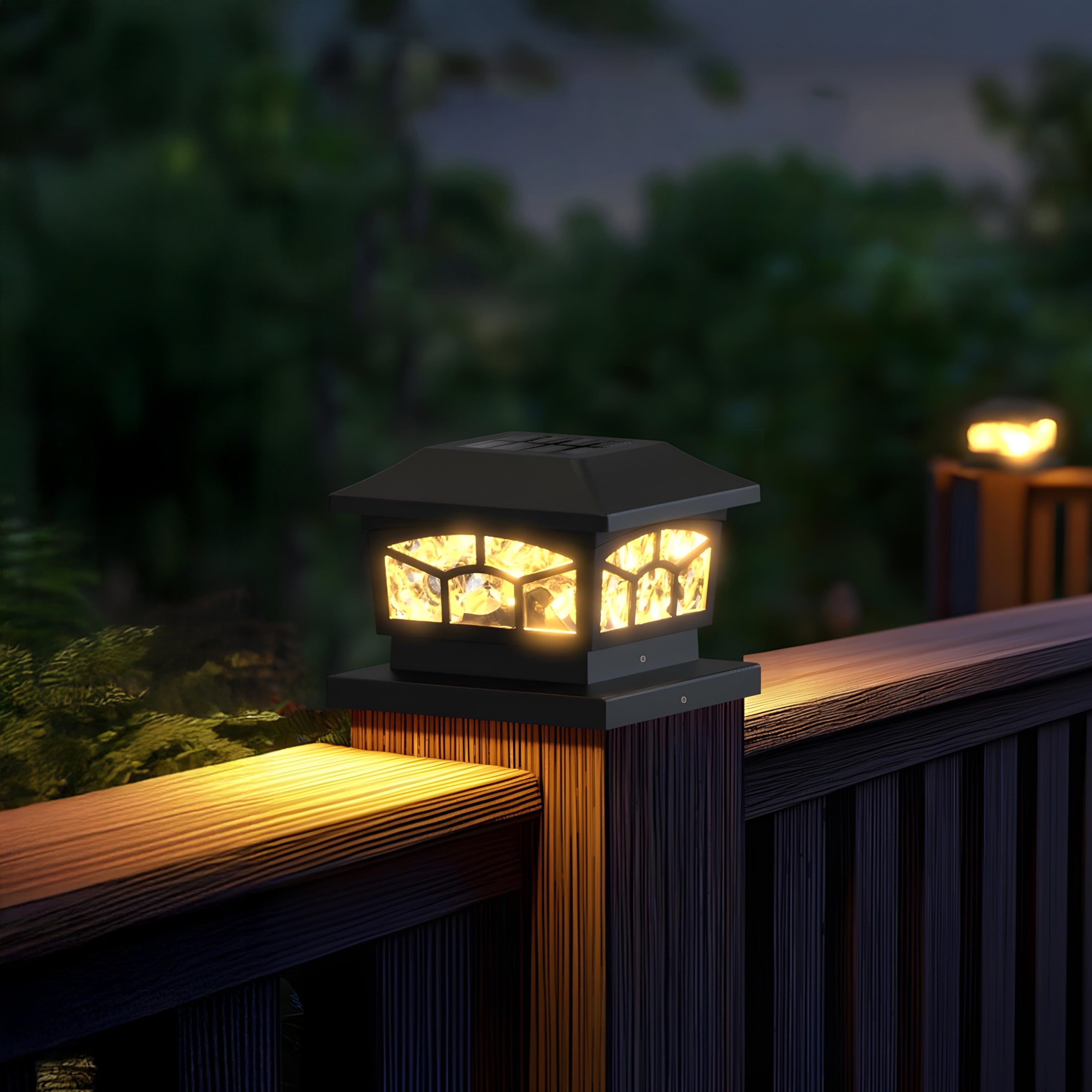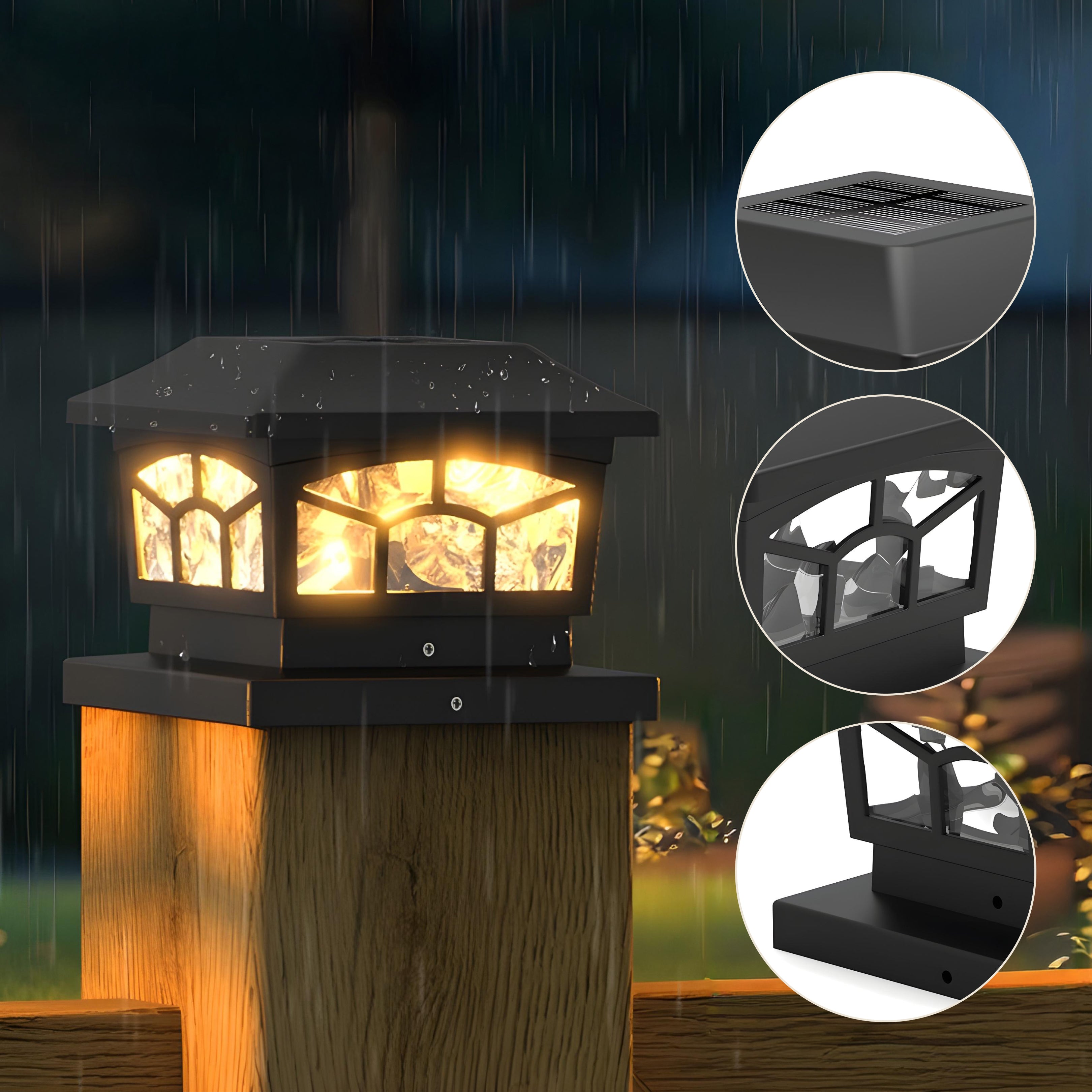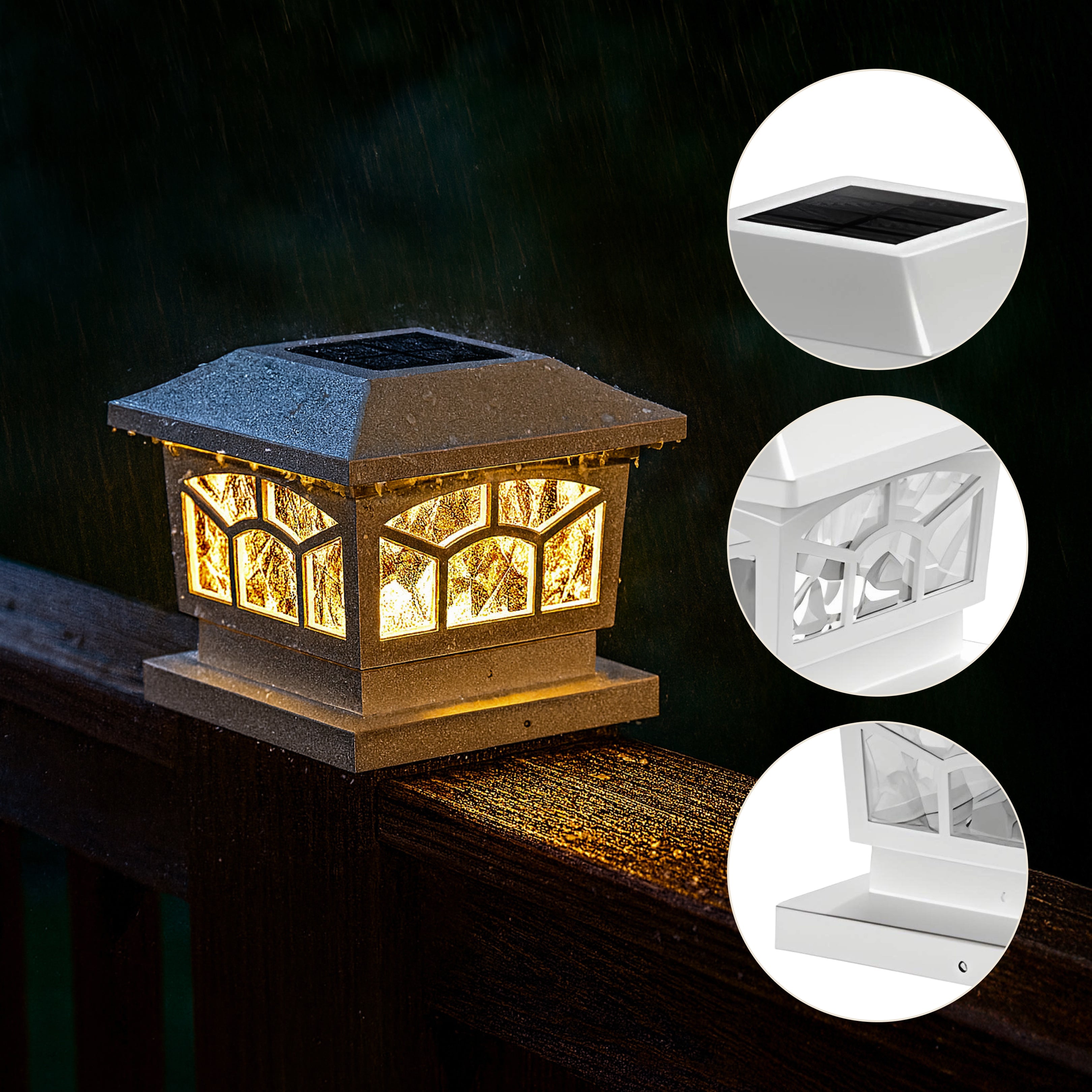 Archway Solar Powered Post Cap Light from Weslen Home features auto lighting and dual lighting modes powered by a solar panel. This post cap light is designed for easy installation on outdoor deck or patio posts and along fences, providing consistent illumination without the need for wiring. Its weather-resistant construction ensures reliable operation in various outdoor conditions.