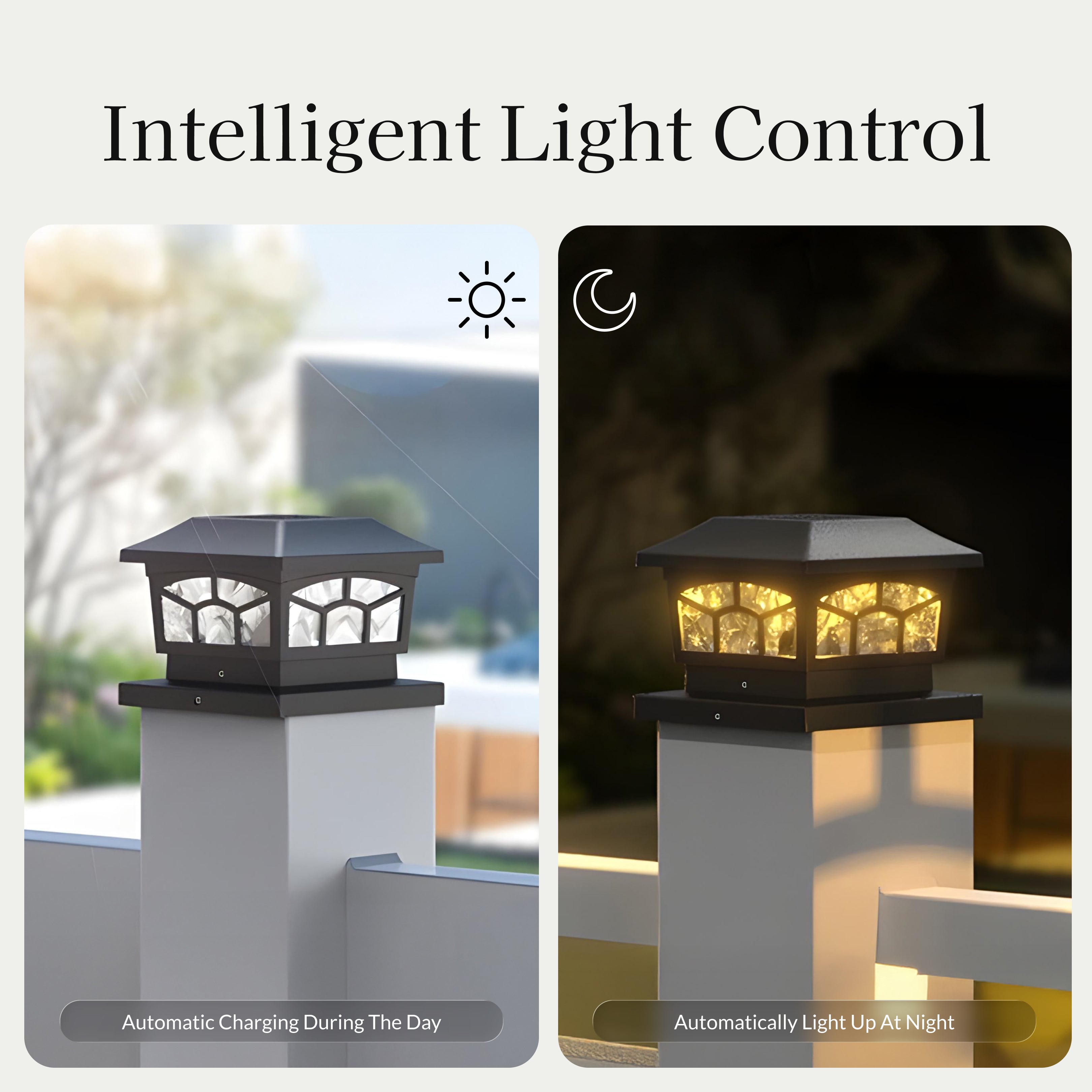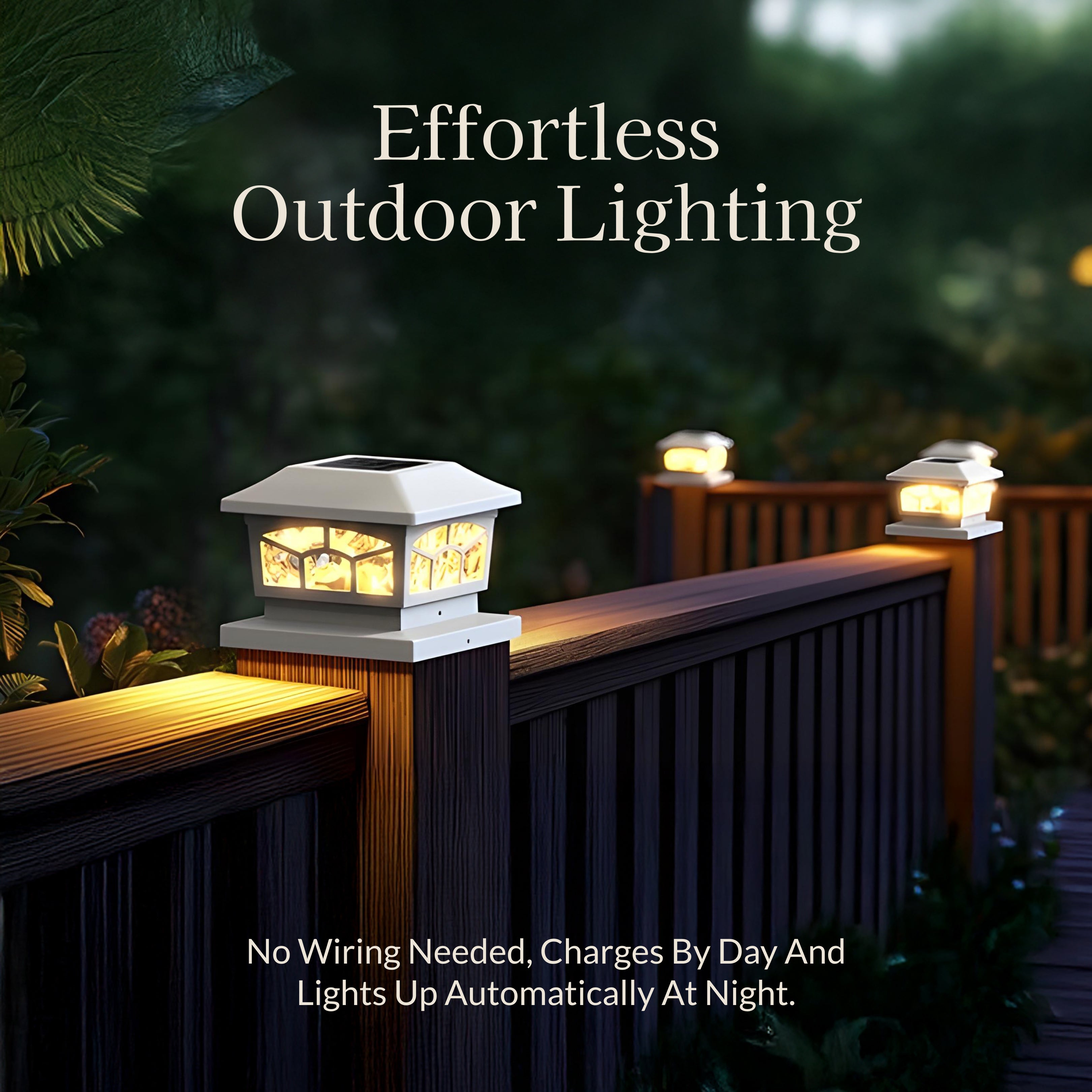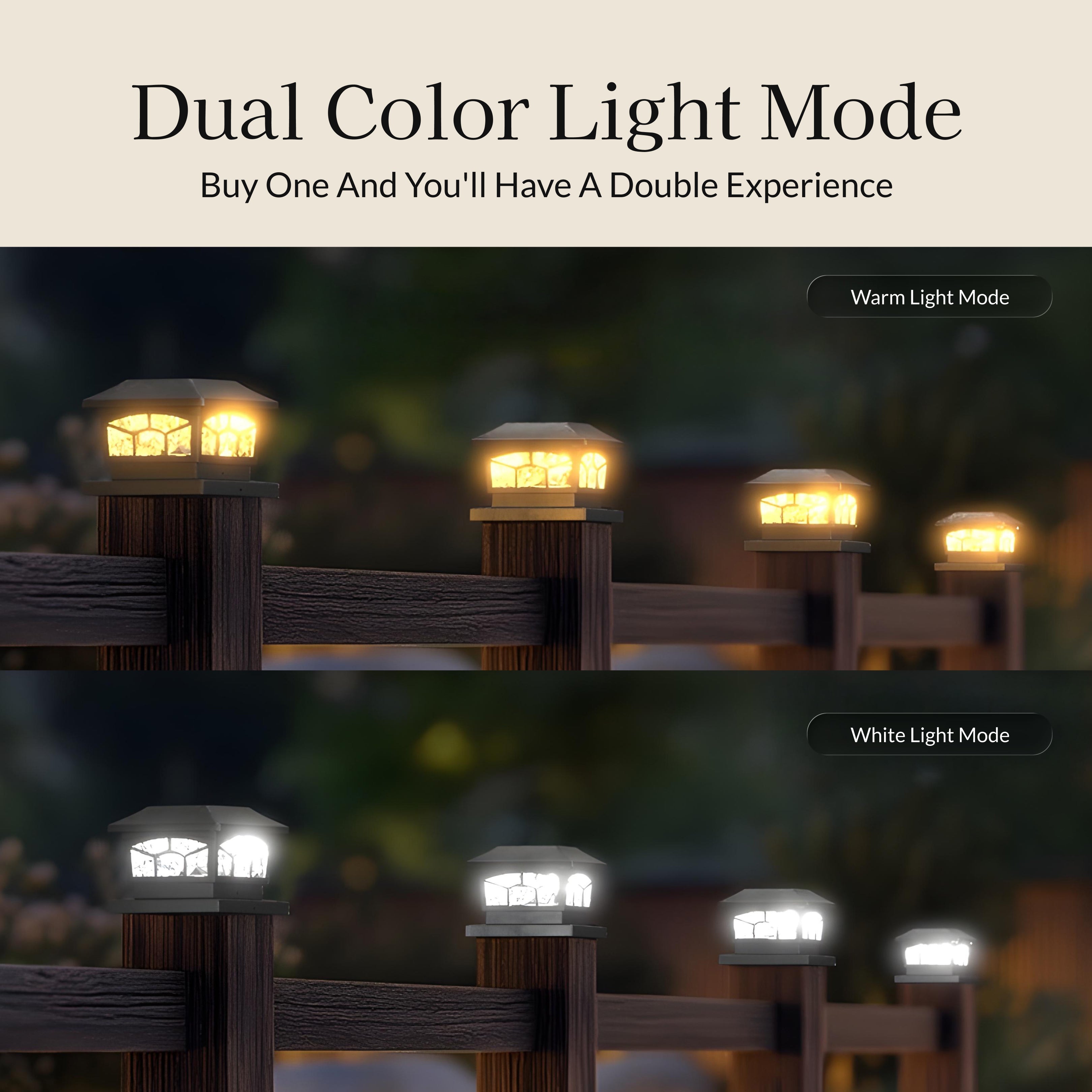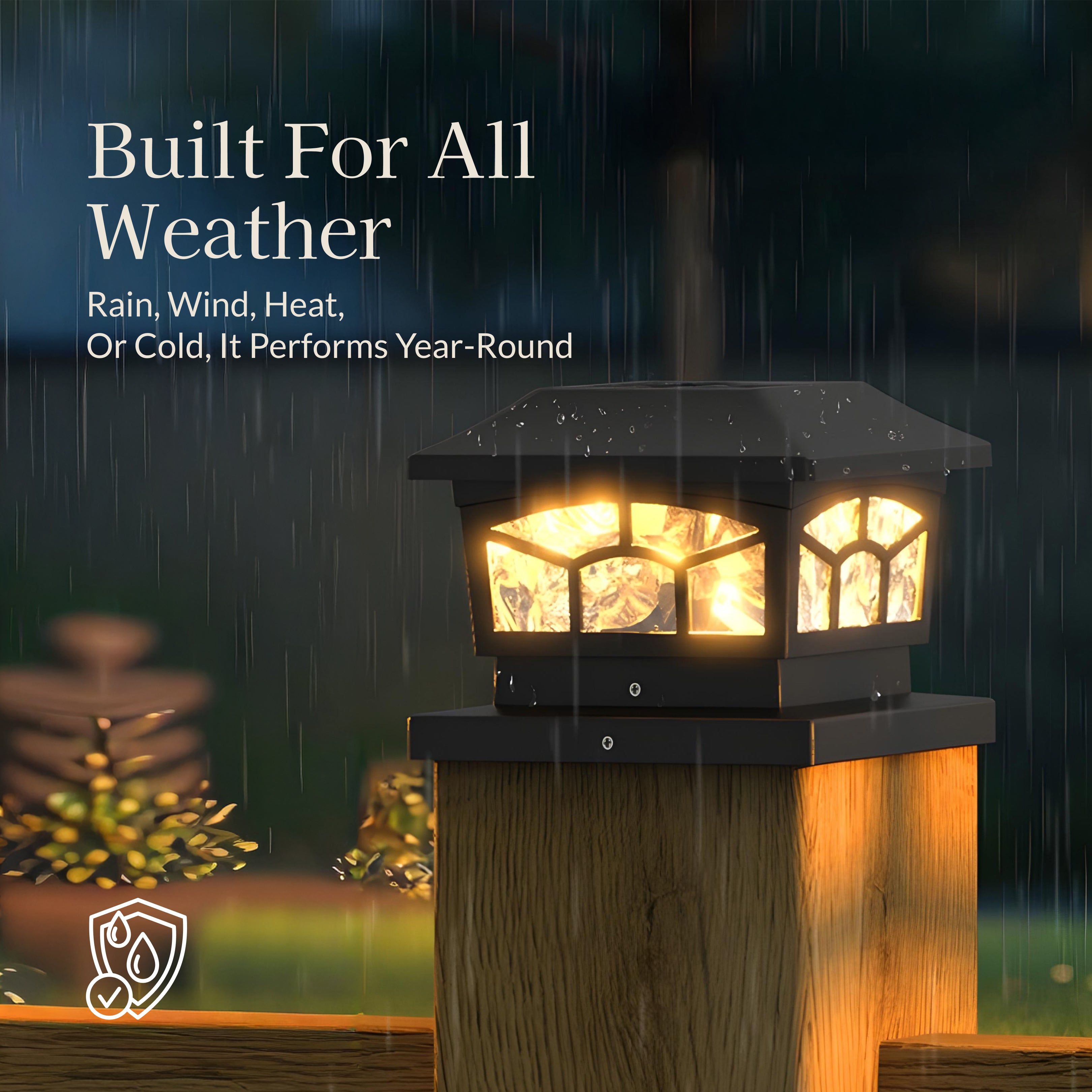 Archway Solar Powered Post Cap Light from Weslen Home features auto lighting and dual lighting modes powered by a solar panel. This post cap light is designed for easy installation on outdoor deck or patio posts and along fences, providing consistent illumination without the need for wiring. Its weather-resistant construction ensures reliable operation in various outdoor conditions.