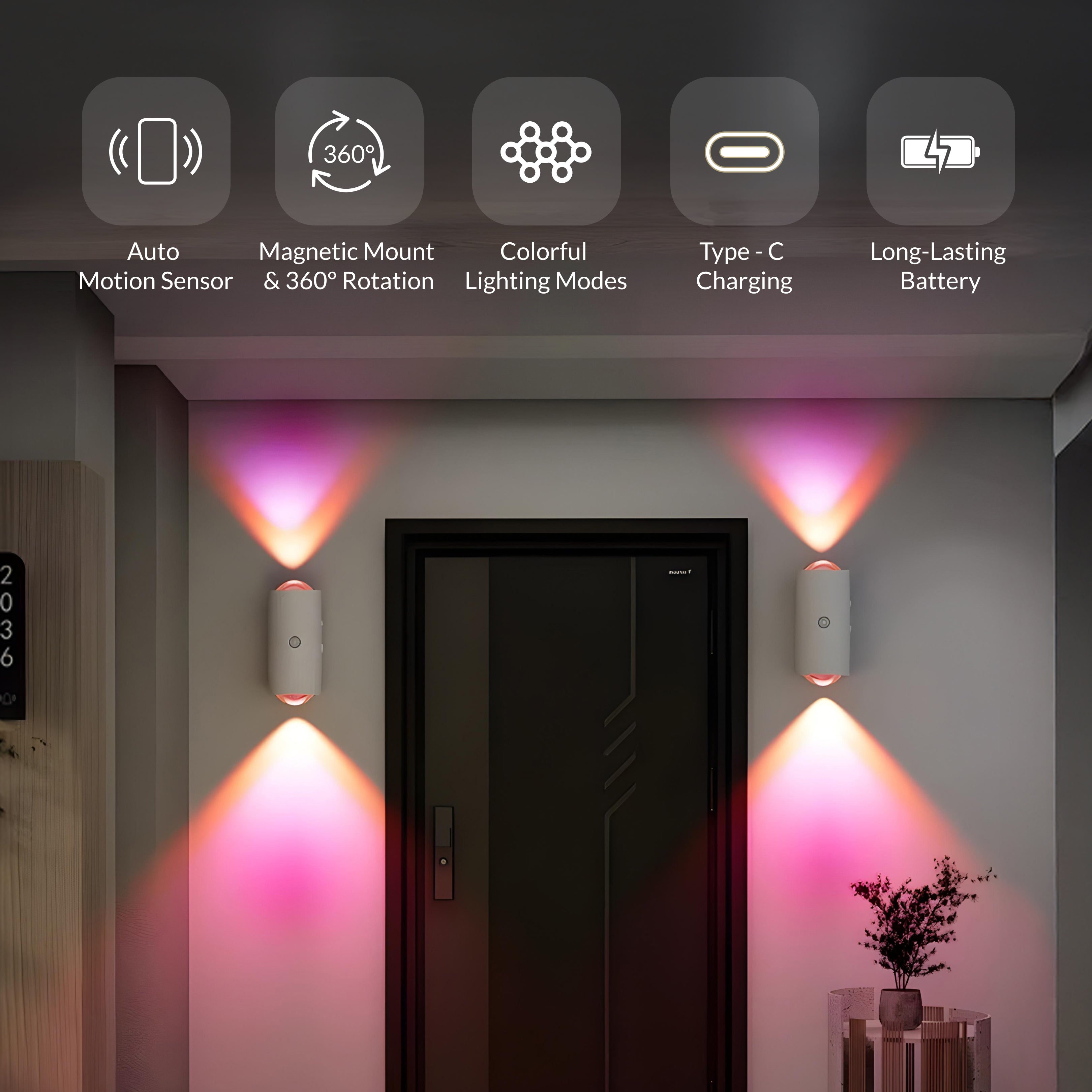 Cylinder RGB Wall Sconce from Weslen Home features motion sensing technology, customizable RGB lighting, and a magnetic mount for easy installation. This RGB wall sconce is designed for practical indoor use in hallways and bedrooms, offering hands-free illumination and flexible light settings. Its durable construction and straightforward mounting system make it suitable for frequently used spaces, allowing users to adjust light colors based on preference or need.