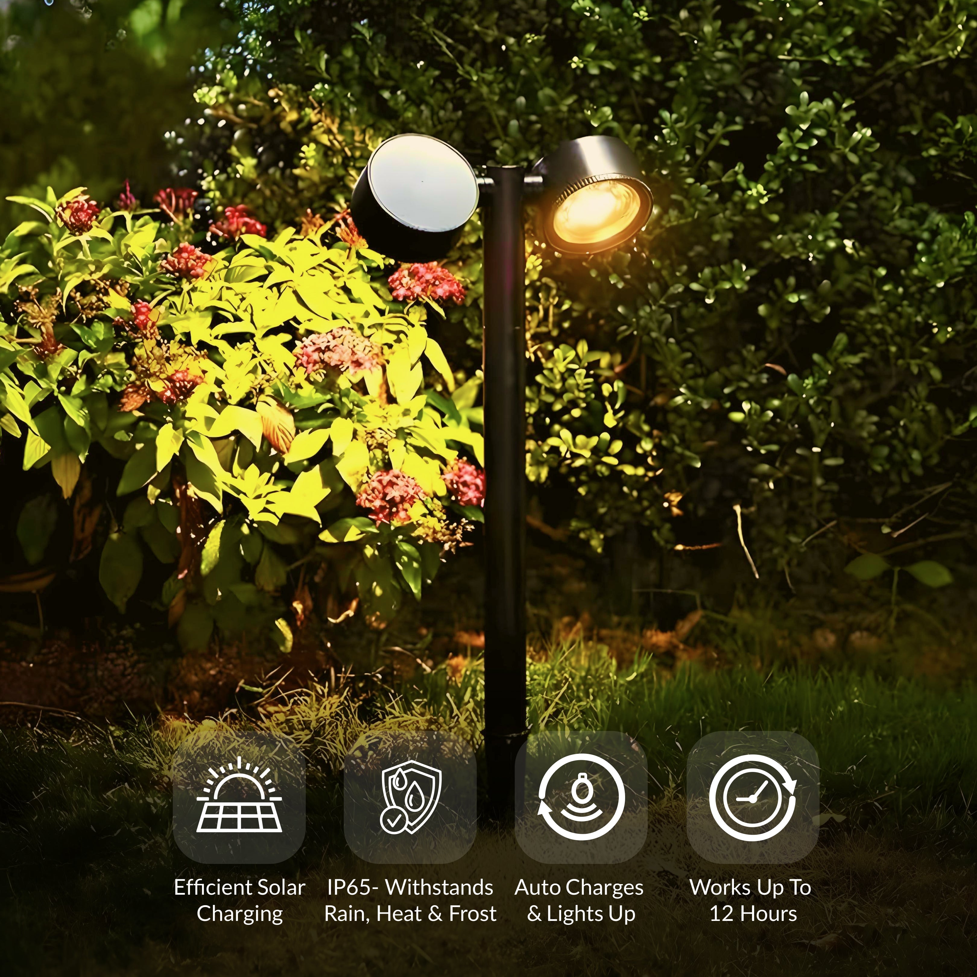 DualBeam Solar Powered Landscape Spotlight from Weslen Home features an LED dual-head design and solar-powered operation. Built to be weather resistant, this landscape spotlight is well suited for outdoor areas such as pathways or landscaped spaces. The dual adjustable heads provide targeted lighting to enhance visibility and security in exterior applications.