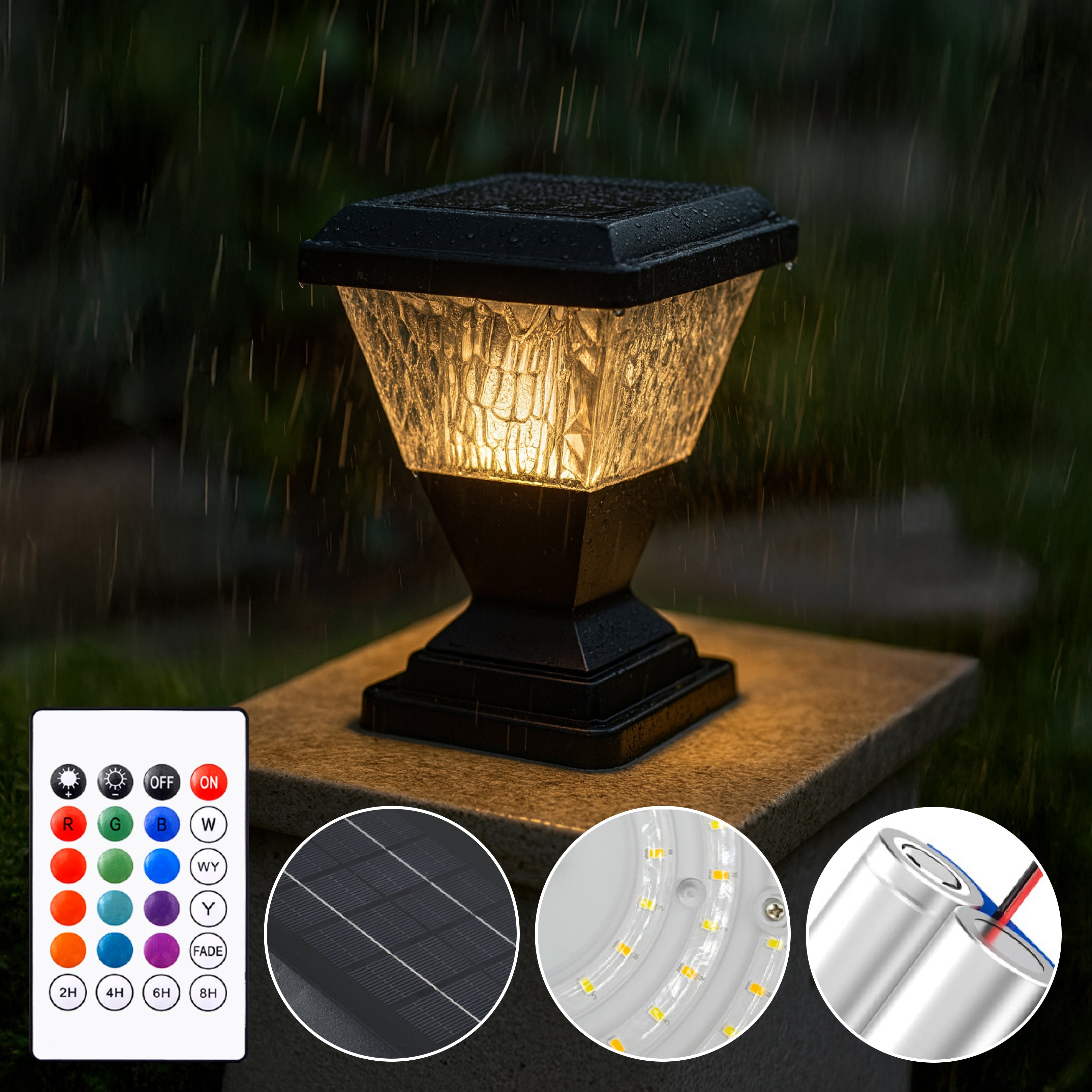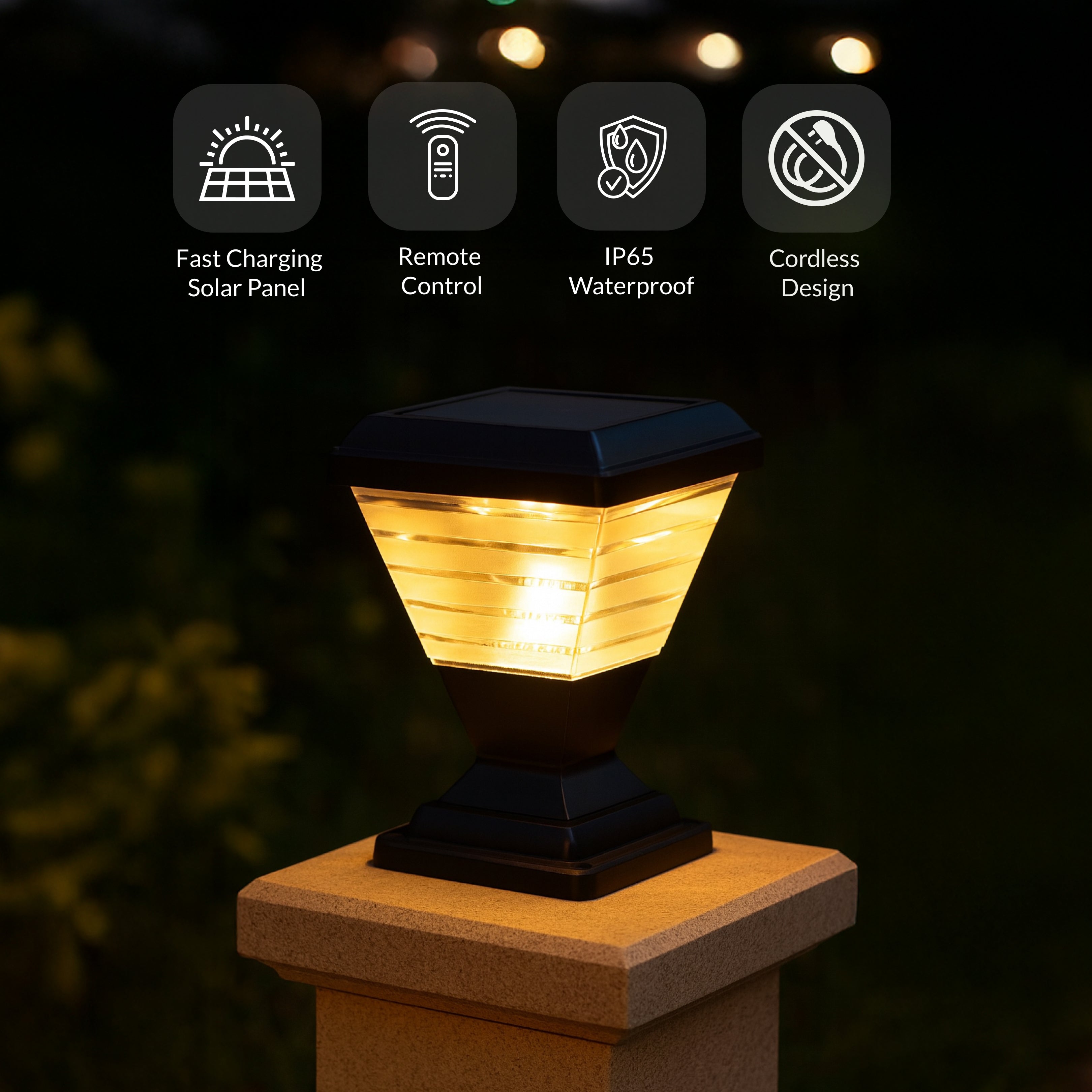 Facet Solar Powered Post Cap Light from Weslen Home features solar powered operation, a remote control for easy adjustments, and a waterproof design. Ideal for outdoor use on decks, patios, and fences, this post cap light offers reliable illumination without the need for hardwiring. It is built to withstand various weather conditions, making it a practical addition to your outdoor lighting setup.