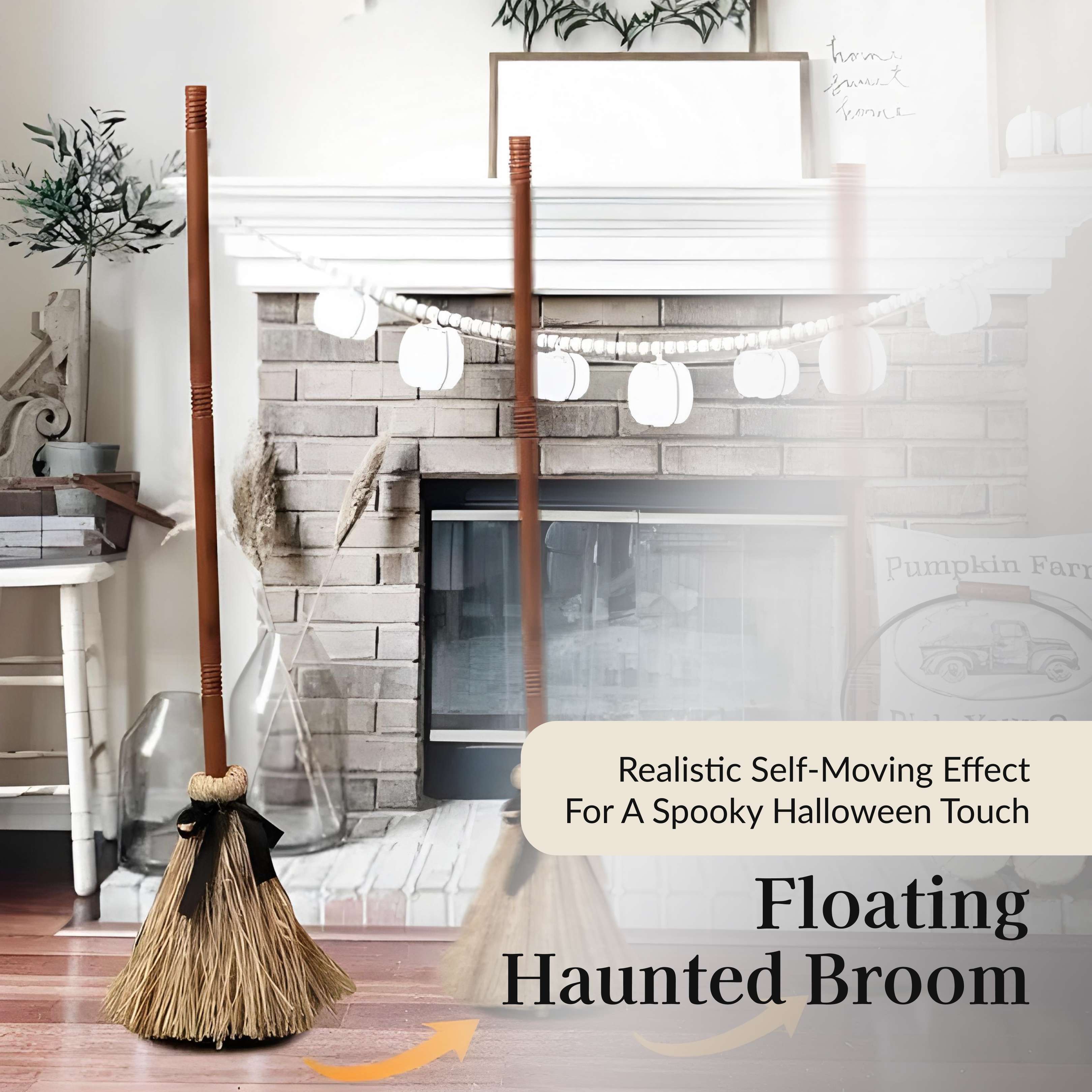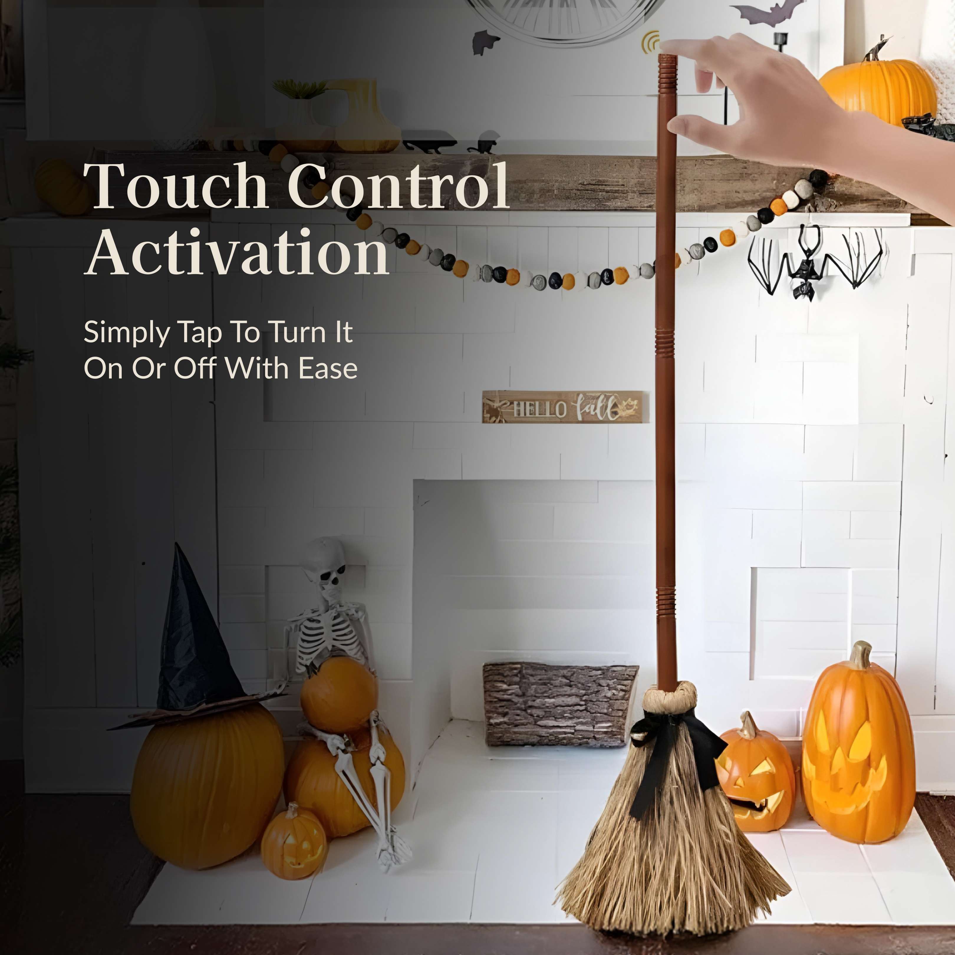Floating Magic Broom from Weslen Home features floating animation and touch activation. The floating broom design makes it suitable for witch decor, adding a distinctive display element to themed spaces. The device activates with a simple touch and is constructed for reliable operation in home settings.