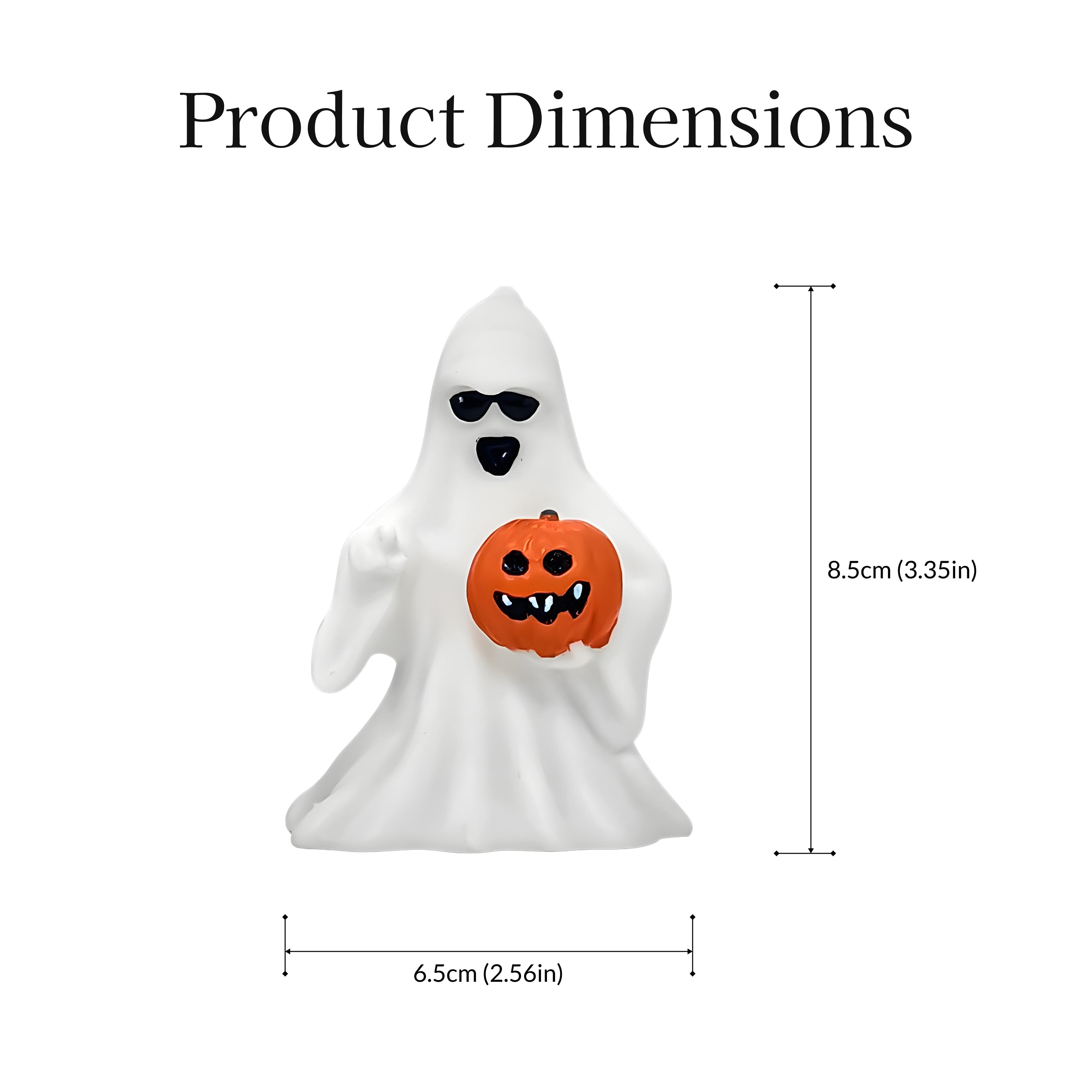 This Halloween ghost figurine adds a playful yet spooky touch to your seasonal décor. Featuring a white ghost holding a grinning pumpkin, it’s perfect for placing on mantels, tabletops, or windowsills. The lightweight design makes it easy to display anywhere, bringing festive spirit to your home.