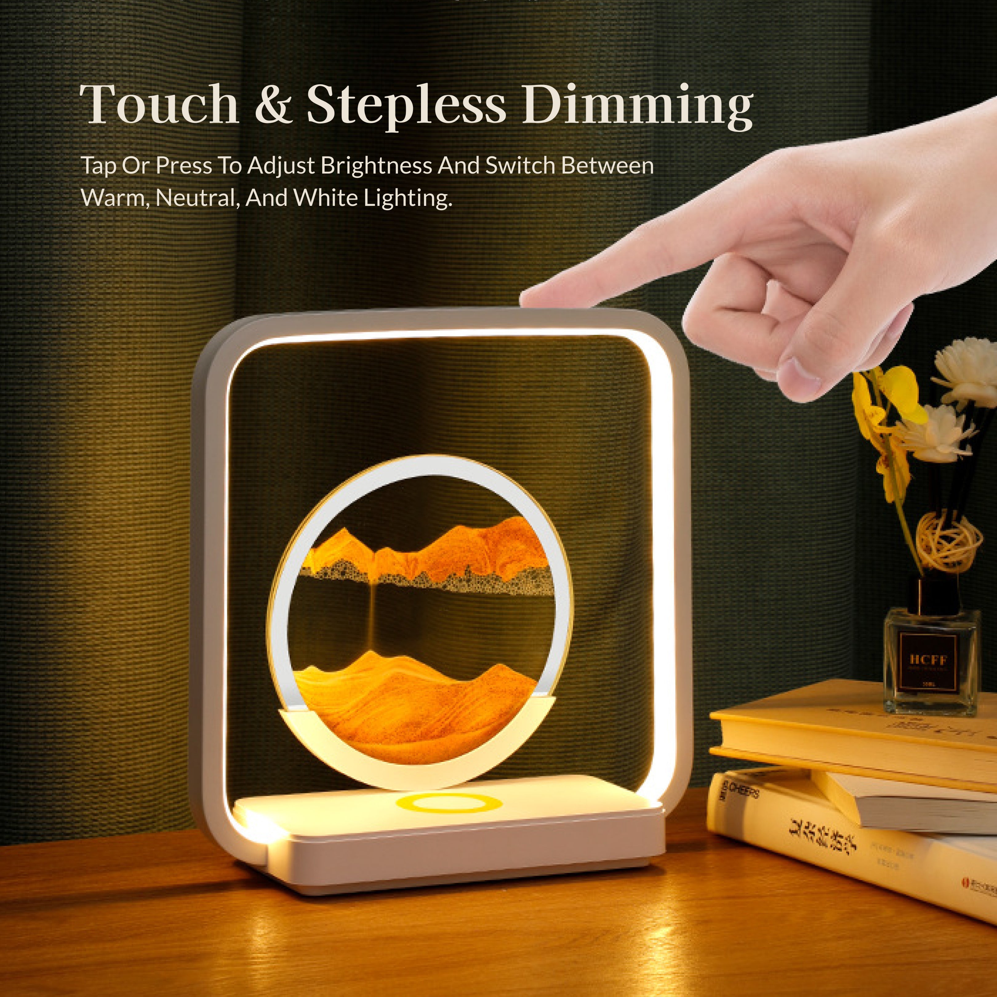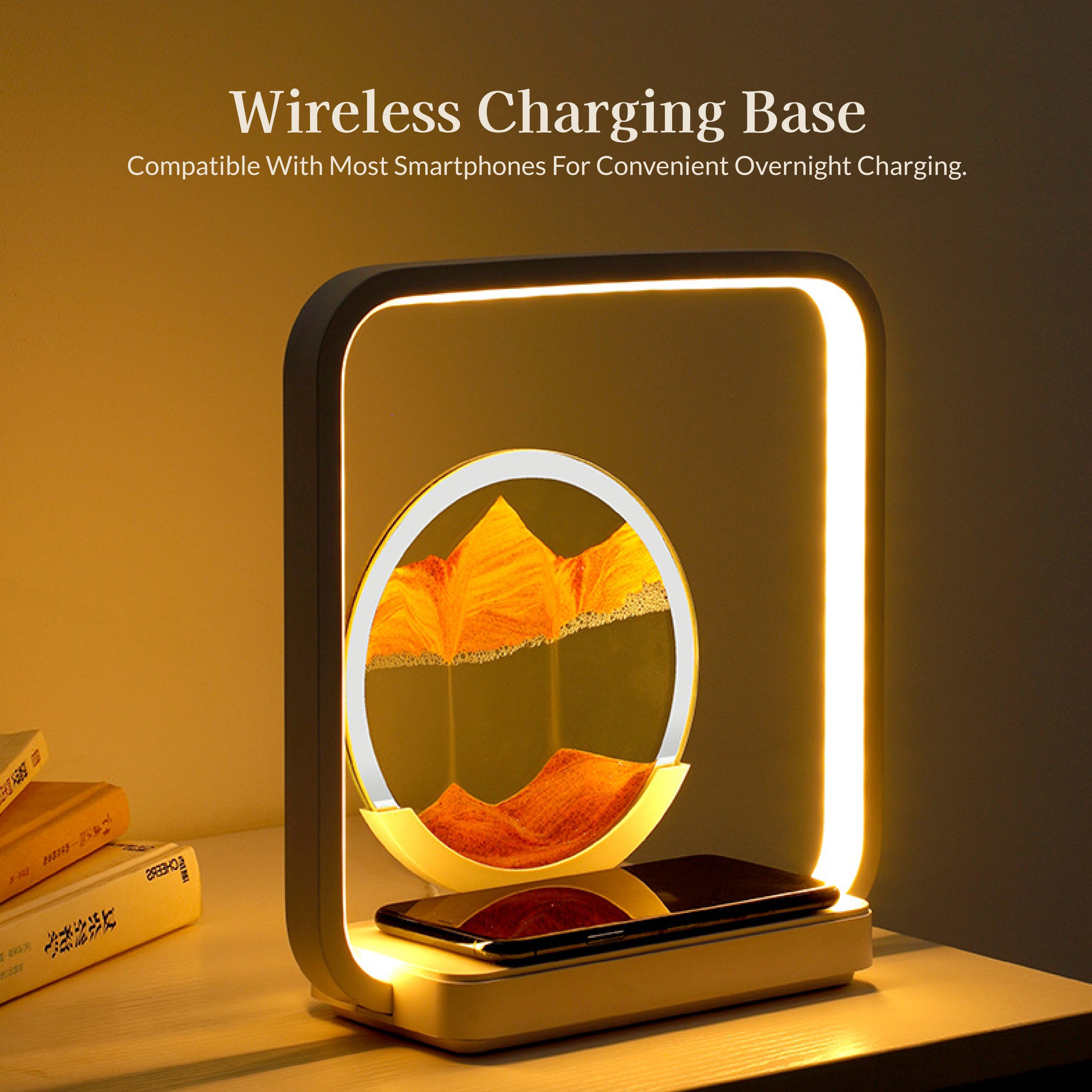 HaloFrame Wireless Charging Table Lamp from Weslen Home features integrated wireless charging, stepless dimming, and a practical hourglass design. This table lamp is suitable for bedroom nightstands and office desks, offering adjustable illumination while conveniently charging compatible devices. Its compact construction fits easily into work or sleep spaces, supporting daily lighting and device charging needs.