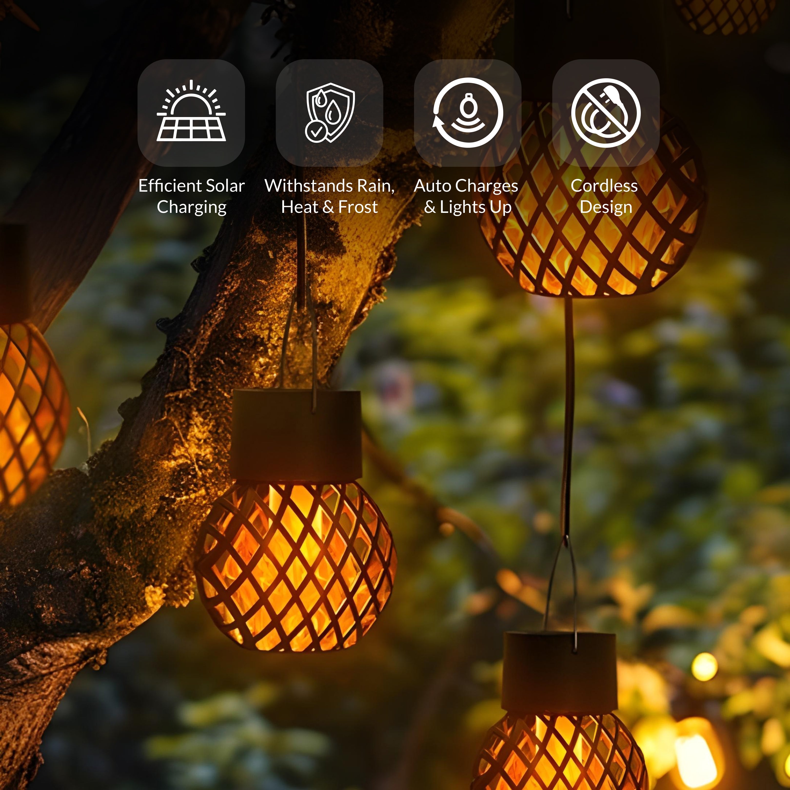 Lattice Flickering Flame Effect Hanging Lantern from Weslen Home features dusk-to-dawn lighting and a realistic flickering flame effect. Designed to be all-weather proof, this hanging lantern is suitable for outdoor use in gardens or on decks and patios, providing dependable illumination that automatically turns on at night. Its durable construction allows for year-round use while the integrated features enhance visibility and create a practical lighting solution for exterior spaces.