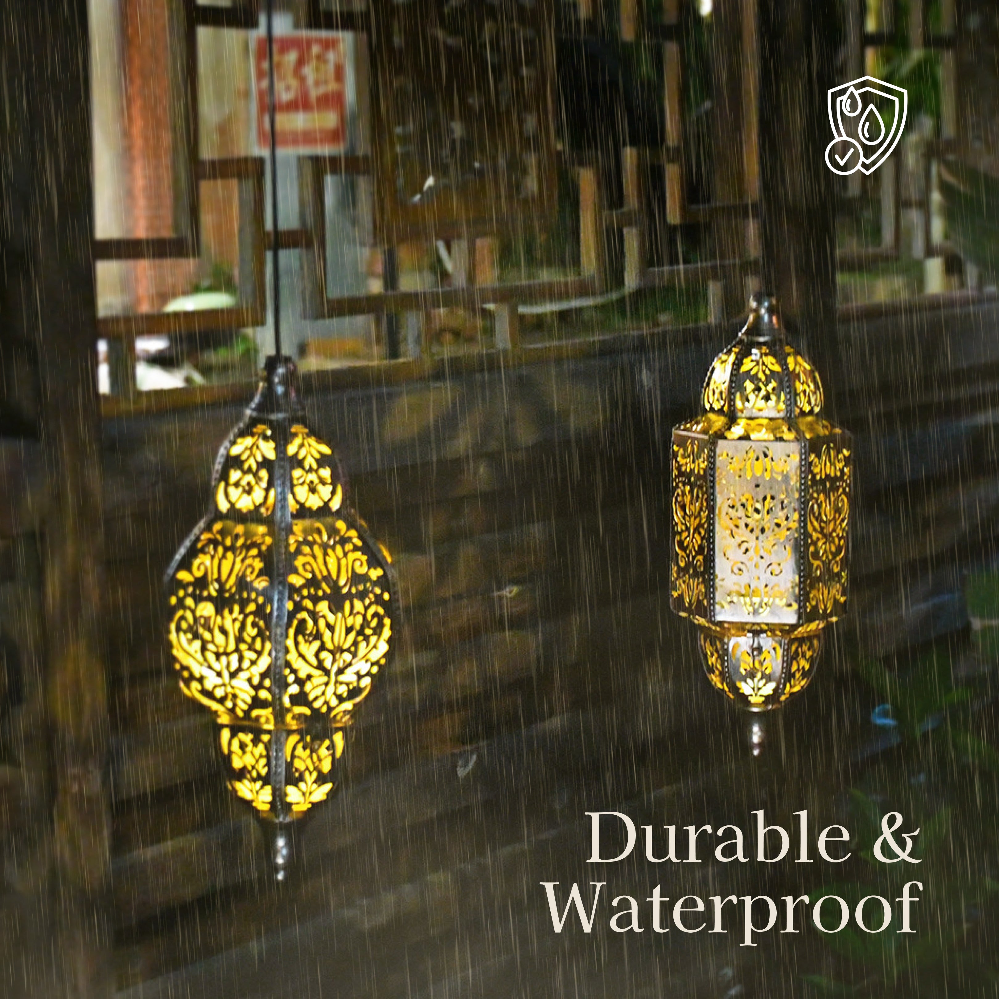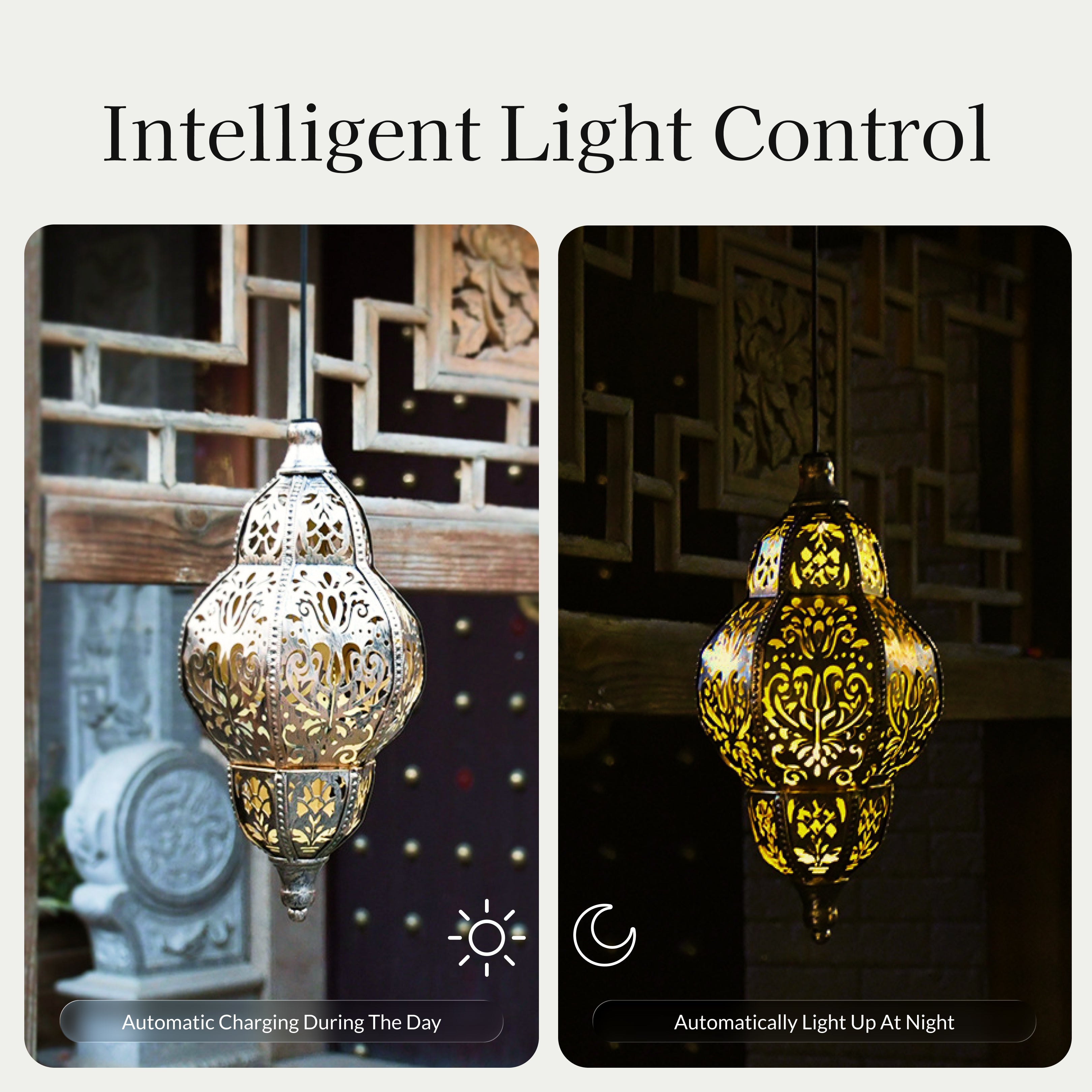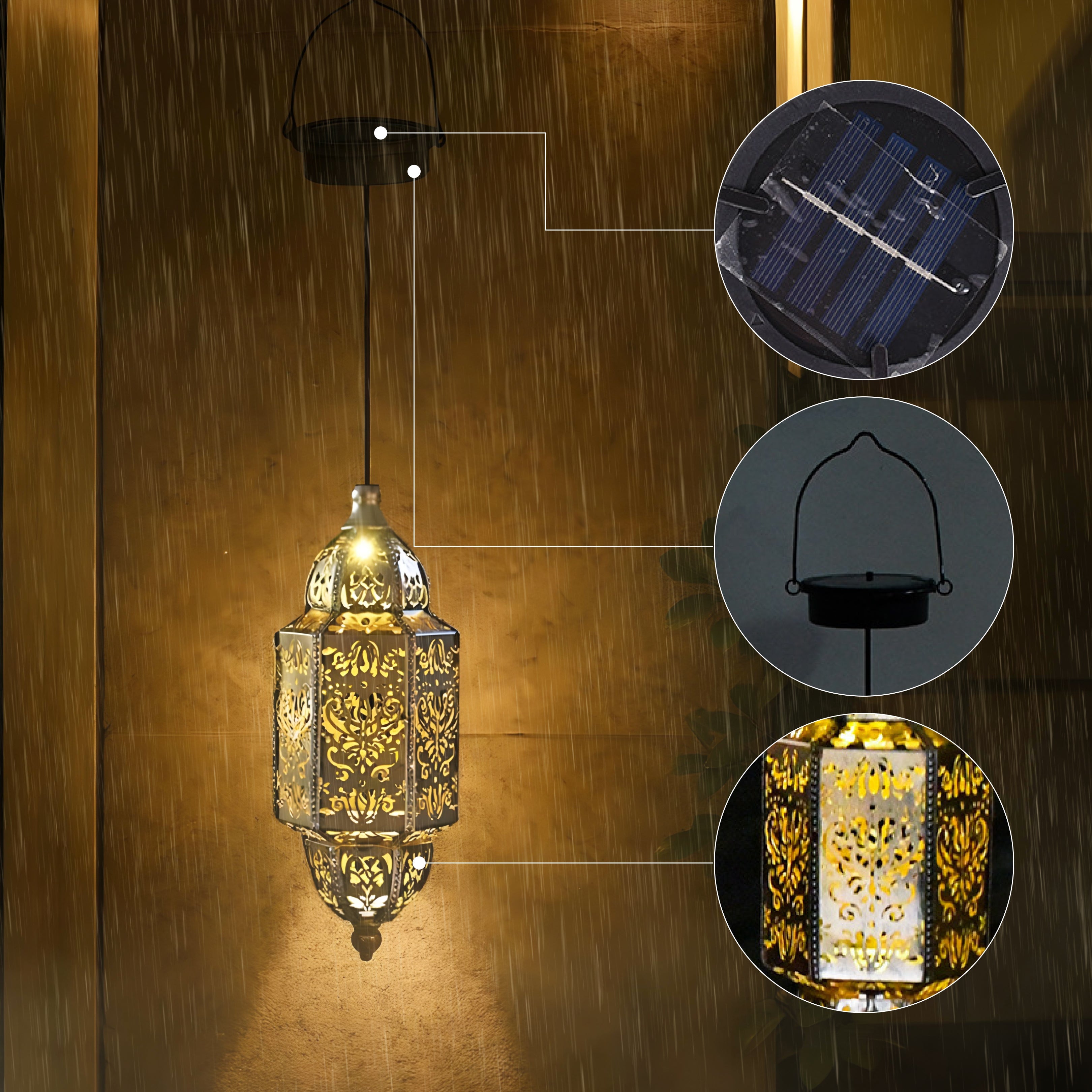 Ornate Solar Powered Pendant Light from Weslen Home features auto lighting and a waterproof design, making it suitable for outdoor use in gardens or on decks and patios. This pendant light operates on solar power, eliminating the need for wiring and allowing for flexible placement. Built to withstand outdoor conditions, it provides reliable lighting performance for evening gatherings or continuous pathway illumination.