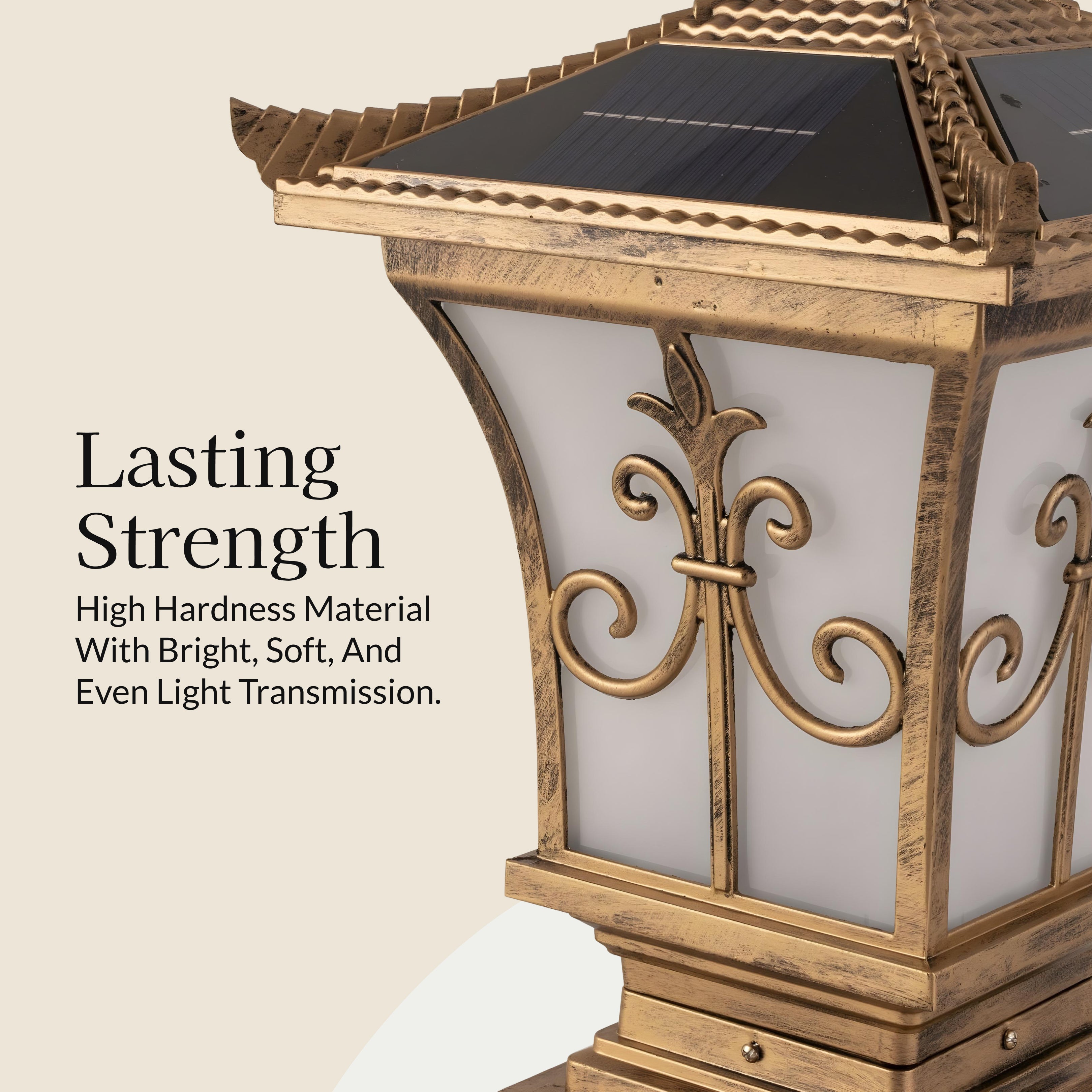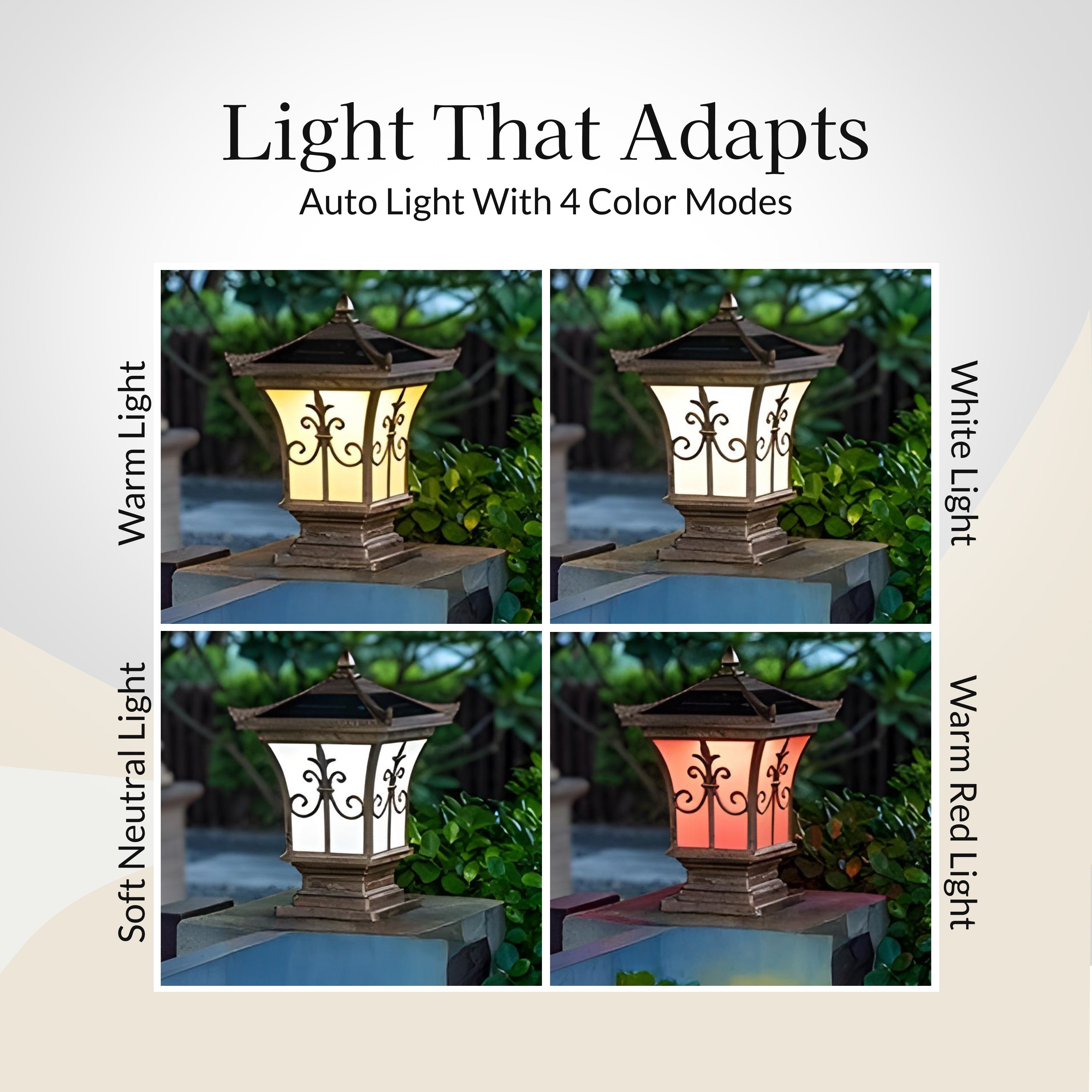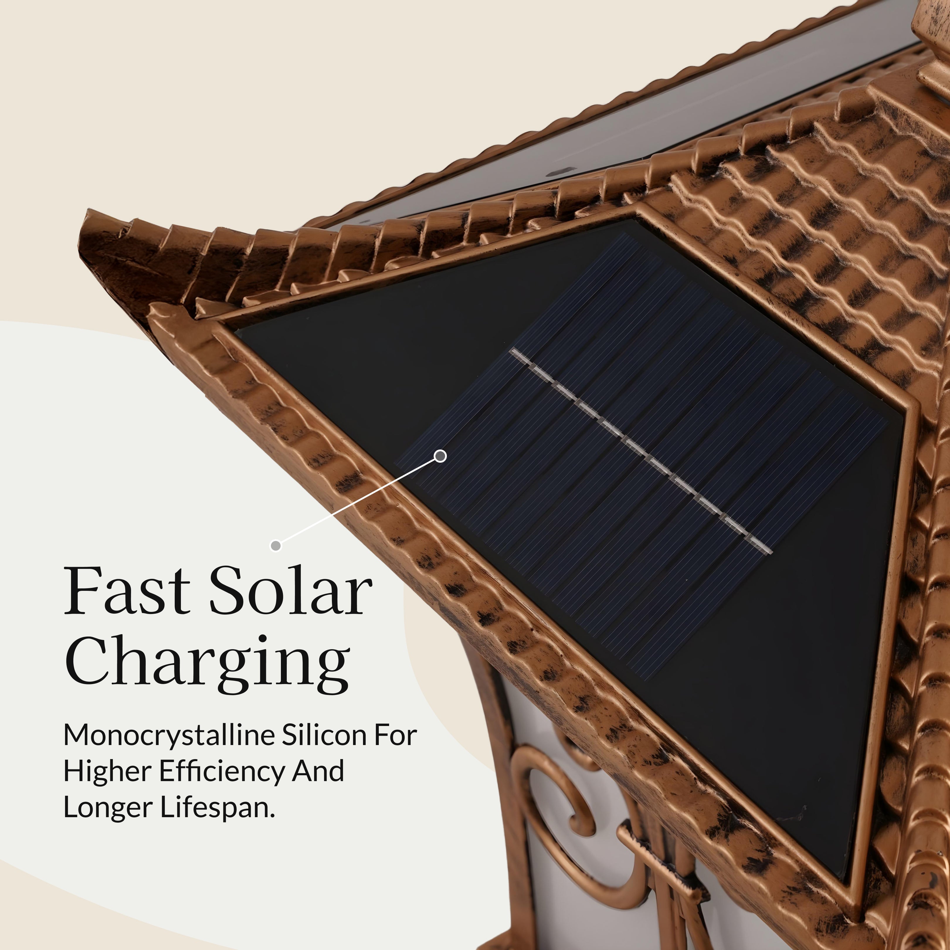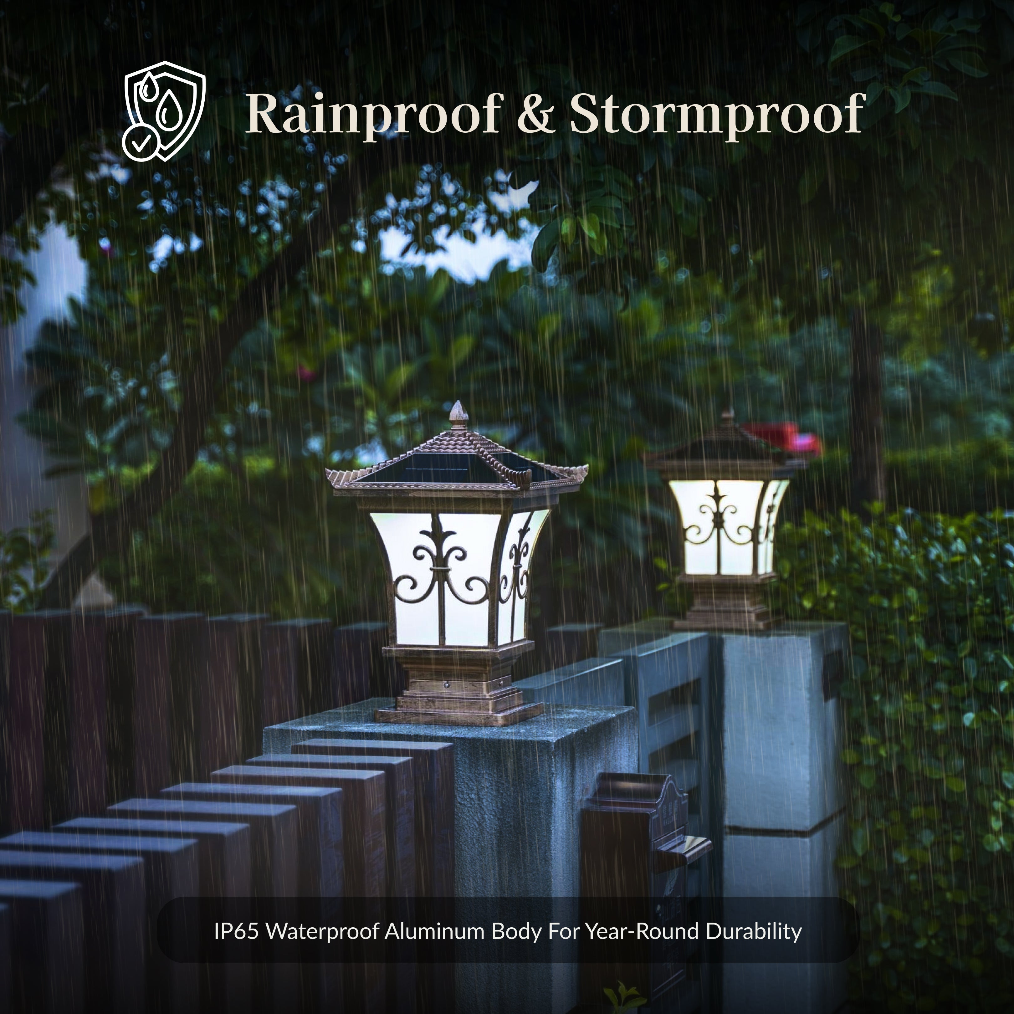Pagoda Solar Powered Post Cap Light from Weslen Home features solar powered operation and a waterproof design. Ideal for outdoor fence posts and pathway lighting, this post cap light comes with a remote control for easy adjustments. It installs securely to standard posts, delivering reliable illumination suitable for various weather conditions.