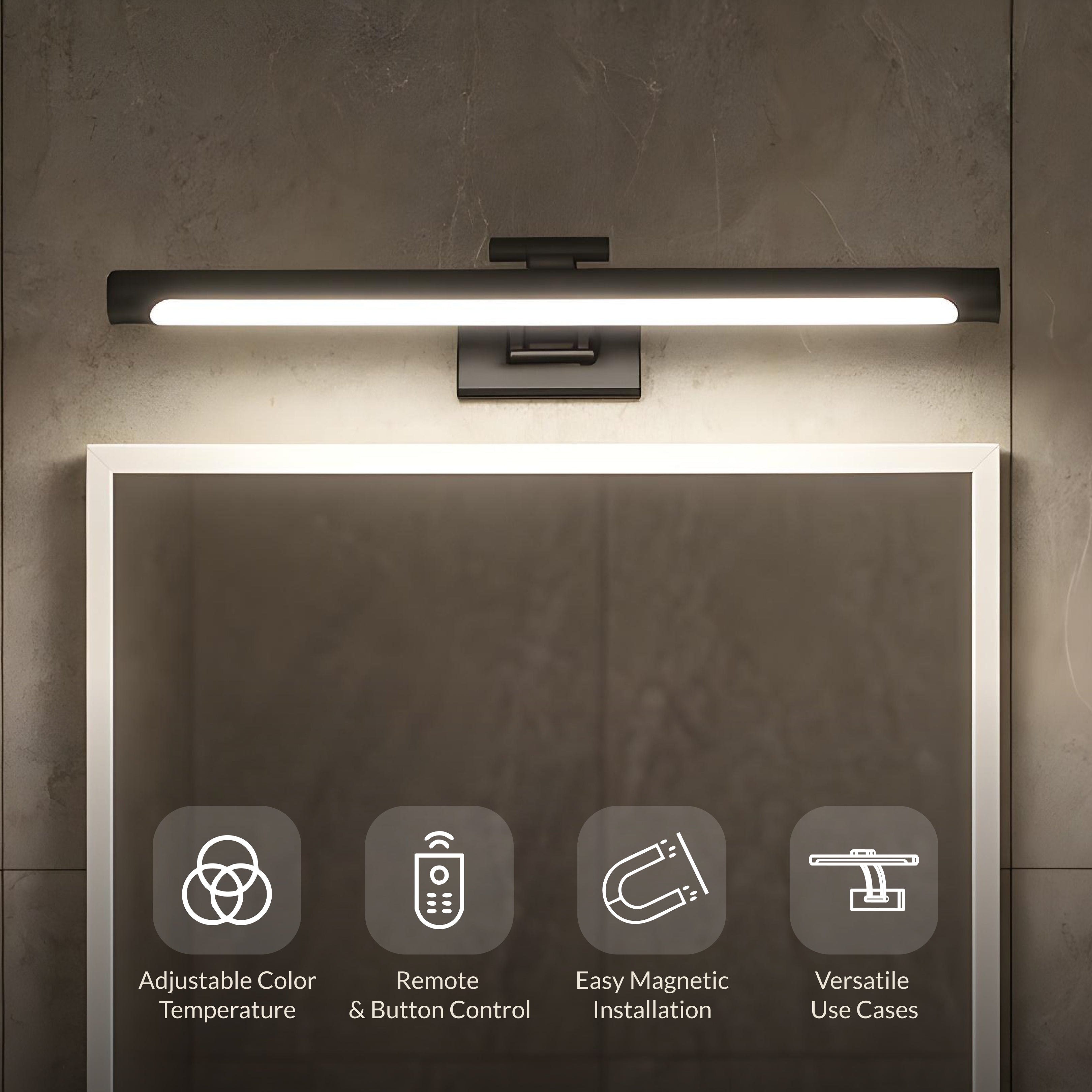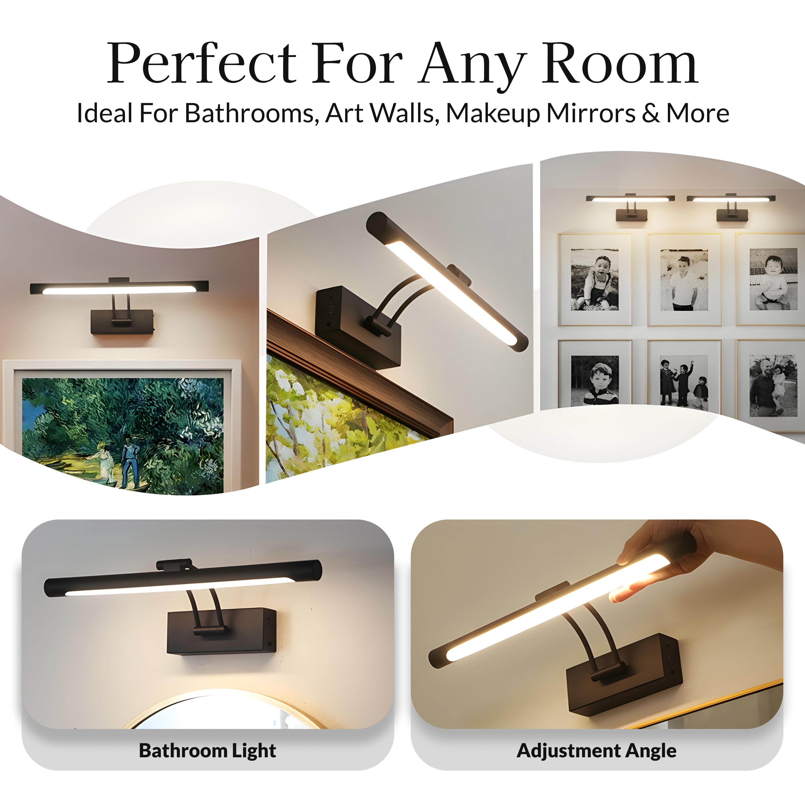Sleek Wireless Charging Picture Light from Weslen Home features wireless charging, dimmable lighting, and a remote control for easy operation. This picture light is well-suited for indoor spaces like the bathroom or living room, offering adjustable illumination to highlight artwork or photographs. The wireless charging capability provides convenient power options, while dimmable settings allow you to customize brightness for different needs.