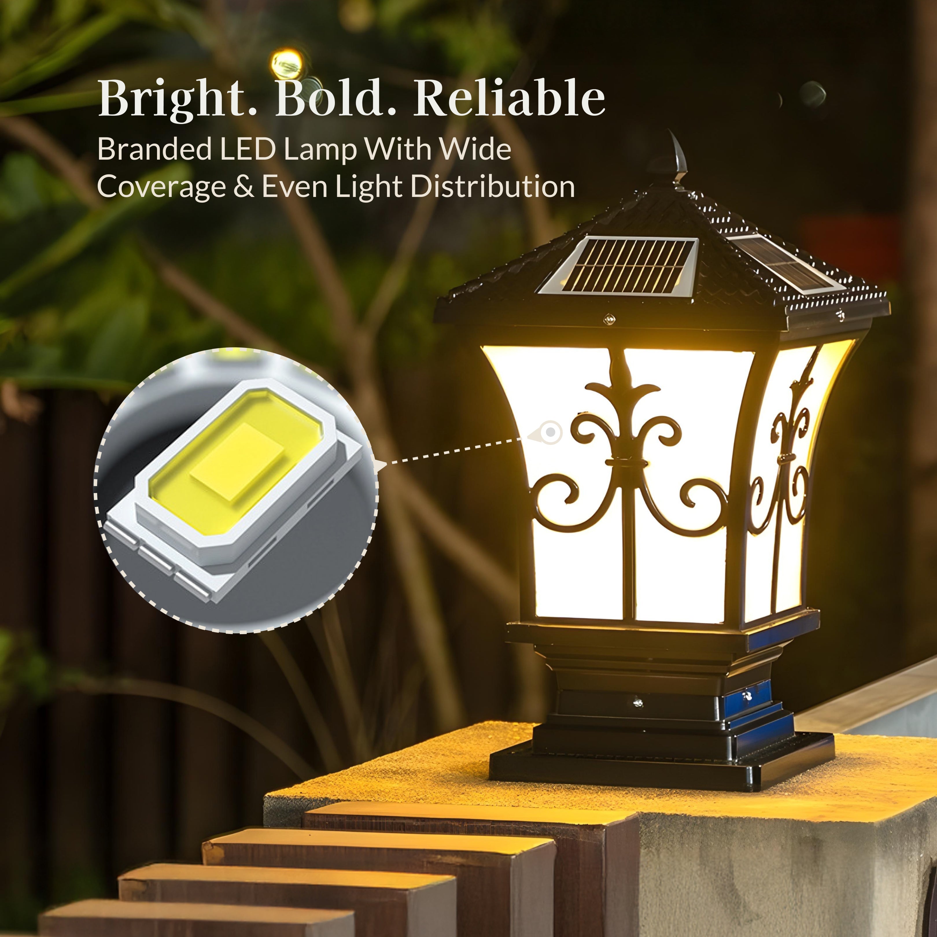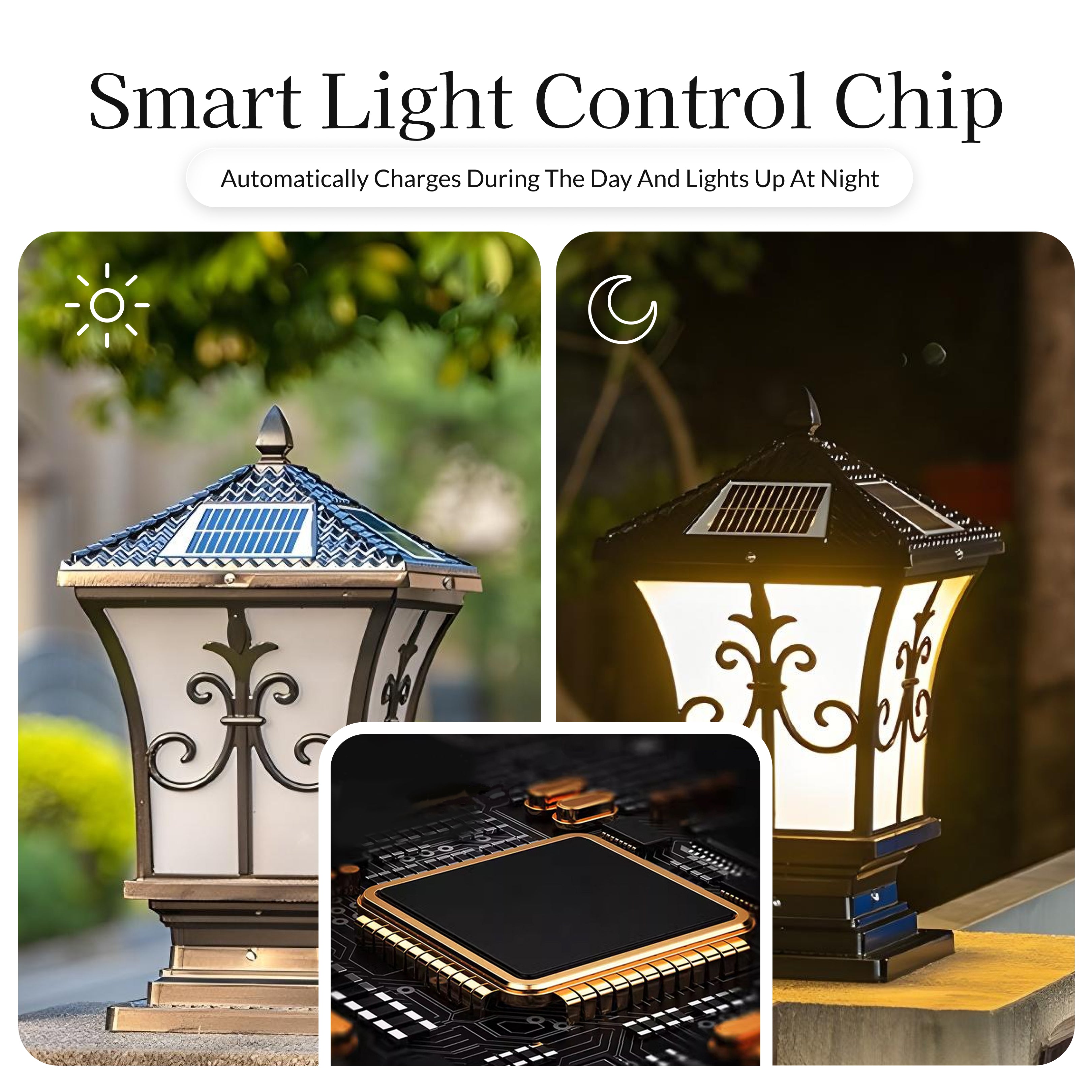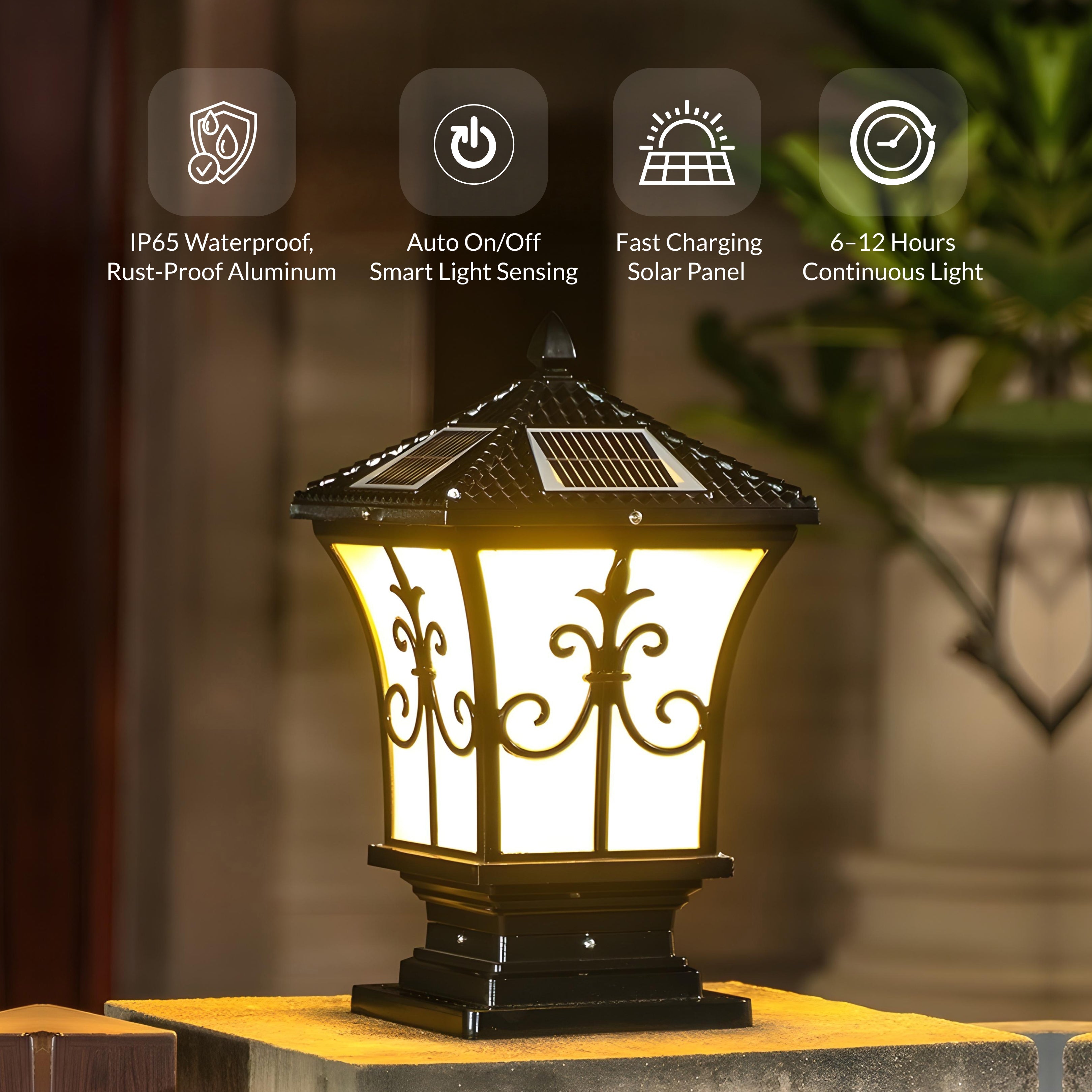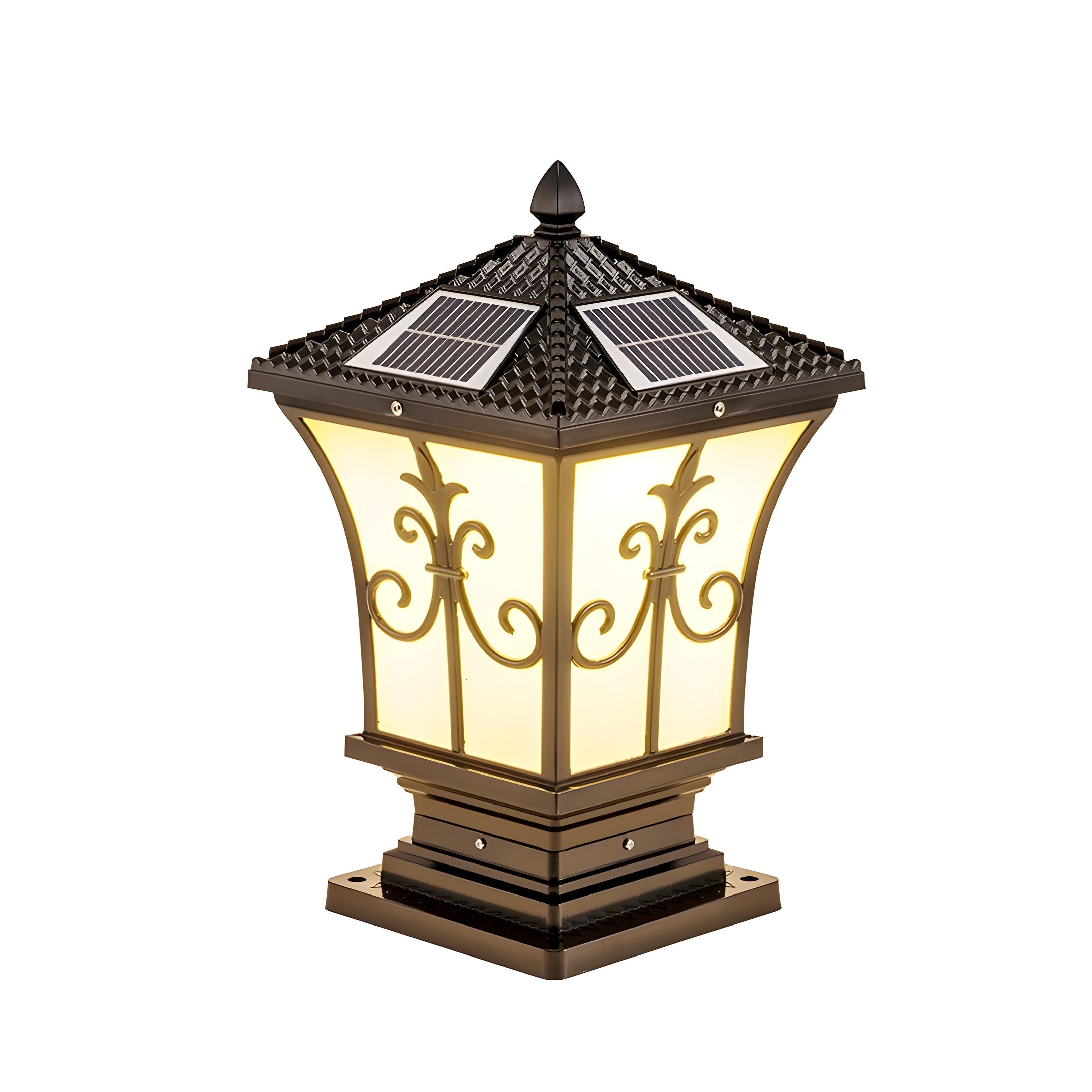 The Vintage Scroll Solar Powered Post Light from Weslen Home features solar powered operation, intelligent control, and a waterproof design. This post light is suitable for outdoor spaces such as decks, patios, and fences, providing reliable illumination without the need for wiring. Its durable construction and weather-resistant materials ensure consistent performance throughout various weather conditions.