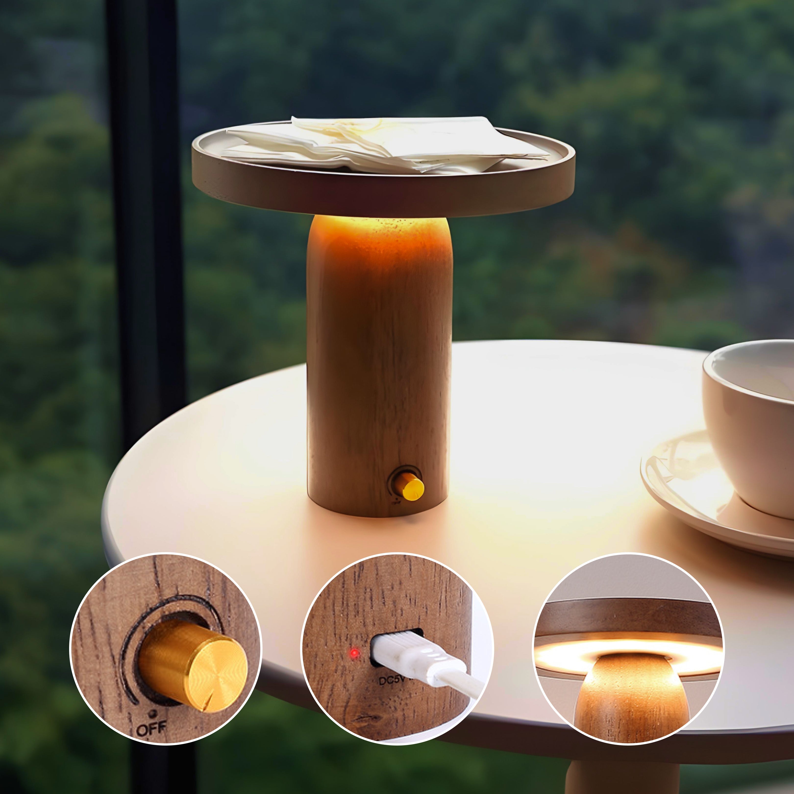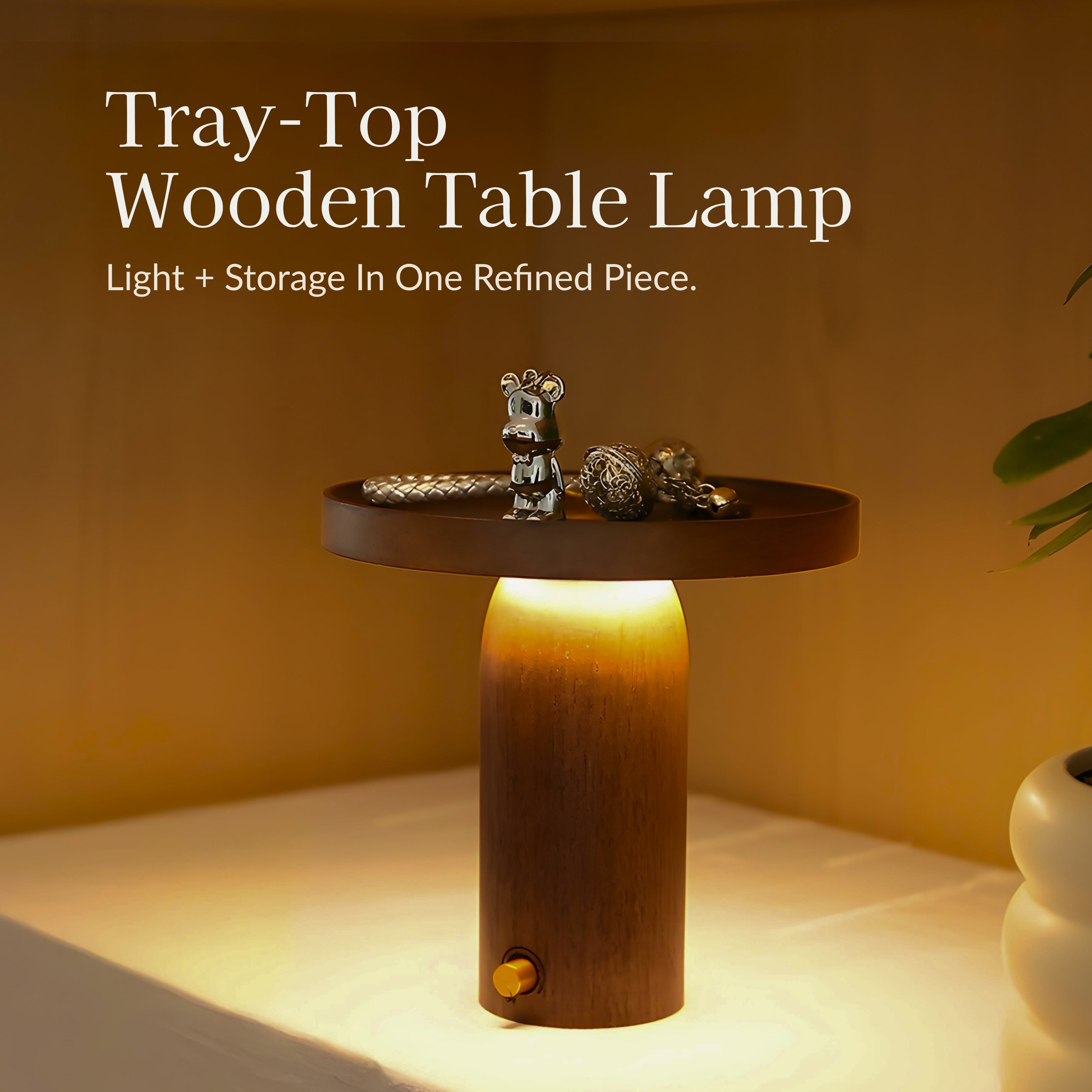 Walnut Cylinder Solid Wood Table Lamp from Weslen Home features a smart storage tray and minimalist design constructed from solid wood. This table lamp is well-suited for bedrooms or living rooms, providing both illumination and a convenient spot to store small items like glasses or phones. The stable, solid wood base ensures durability and reliable performance for everyday indoor use.